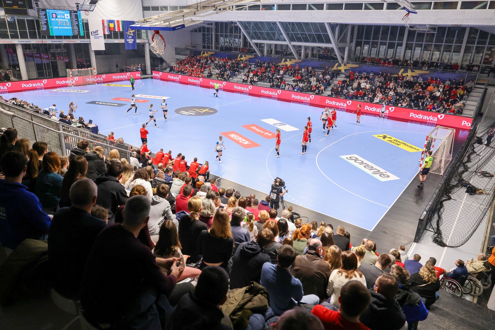 Zbog velikog broja ozlijeđenih igračica, odnosno, sužene rotacije, susret protiv rumunjske ekipe je bio itekako izazovan. Početno vodstvo pripalo je gostujućoj ekipi, što Podravkašice ubrzo preokreću nizom od dva pogotka Matee Pletikosić. U petoj minuti prvo pomalo nelogično isključenje u obrani za Tinu Barišić, nakon čega se sve vraća na početak kod rezultata 2:2. Uskoro su naše rukometašice ponovno povele sa sjajnim prodorima Klare Birtić s desne vanjske pozicije pa je početkom desete minute rezultat 5:4. Krajem 15. minute dvorana je eruptirala oduševljenjem nakon što je Lucija Bešen zaustavila sedmerac. Bio je to period u kojem se igralo ‘gol za gol’, sve do sredine 18. minute kada ekipa Bukurešta pogotkom iz sedmerca ponovno sve vraća na početak pa je rezultat 7:7. No, nakon toga u bolju seriju ulazi rumunjska ekipa koja iskorištava svoje prilike i nizom od osam pogodaka odlazi na visoku prednost. Nažalost, realizacija kod naše ekipe nije bila na željenom nivou, no želja i trud bili su prisutni. Dulji period bez pogodaka u 29. minuti prekida Kala Kosovac koja uspješno realizira s desnog krila za rezultat 8:14 s kojim se odlazi na predah. Sve to značilo je još odlučniji ulazak u nastavak susreta.