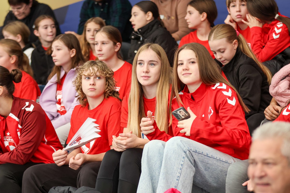 Igračice obje ekipe istrčavale su u pratnji mlađih igračica iz naše Škole rukometa, što je uistinu bio poseban doživljaj za njih. Tijekom poluvremena, publiku su predivnim nastupom razveselili mlađi uzrasti Mažoretkinja grada Koprivnice te im se ovim putem zahvaljujemo na suradnji!