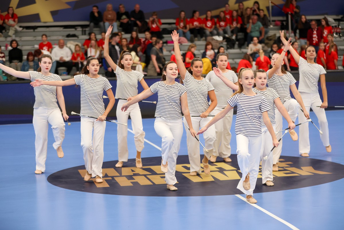 Igračice istrčavale s djevojčicama iz Škole rukometa, nastup mažoretkinja na poluvremenu