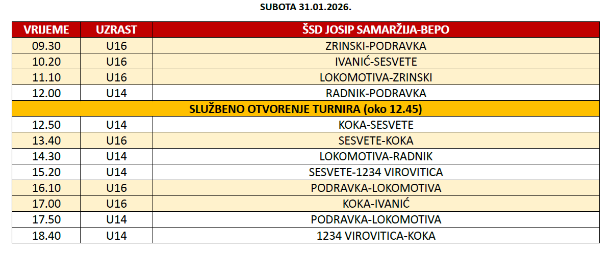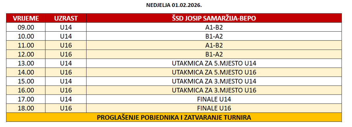U nastavku objave možete pogledati raspored svih utakmica na turniru.