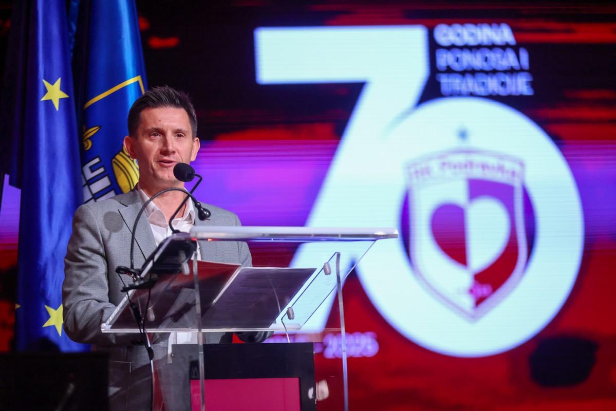 – Ne postoje riječi i rečenice koje bi na kvalitetan način mogle opisati emociju i ono što rukomet i Podravka znače Koprivnici i Podravini te koliko je zapravo emocija i ljubavi bilo u ovih 70 godina. Također, što su sve te emocije i ljubav značile našim ljudima, svim generacijama rukometašica, trenera i uprava Kluba. Želim naglasiti nešto što nije neka tajna – puno toga što danas imamo u našoj Koprivnici i puno toga što je kretalo prije 50, 60 ili 70 godina, najvećim je dijelom kretalo na pogon Podravke, kompanije s ogromnim uspjesima koja je krenula upravo u maloj Koprivnici. Najveća promocija dolazi putem sporta. Kroz sva ta desetljeća postojanja, imamo sjajnu promociju kroz naše rukometašice. Hvala svima na tom jednom ponosu, emociji i osjećaju pripadnosti jednom Klubu, jednom Gradu i jednom kraju. Grad je vlasnik Kluba i od kada je to tako, mislim da smo napravili jednu stvarno jako, jako dobru priču koja me u nekim danima izuzetno veseli i puni ponosom. Danas cijeli kolektiv Kluba radi jedan ogroman, ogroman posao za naš rukomet i budućnost rukometa u našem gradu. Siguran sam da su pred nama lijepi i uspješni dani, siguran sam da uz ovakav smjer kakav smo si zacrtali, gdje imamo ogromnu podršku Podravke i Hrvatskog rukometnog saveza, kojem također toplo zahvaljujem na suradnji, da u sljedećih 10 godina možemo doći do jedne europske titule jer u konačnici, naš Grad i naša povijest to zaslužuju. Svaka pobjeda na kraju dolazi iz srca, a srce je Podravka – rekao je u svojem govoru Mišel Jakšić. Nakon gradonačelnika Koprivnice, svim prisutnima obratila se predsjednica Uprave Podravka Grupe Martina Dalić.