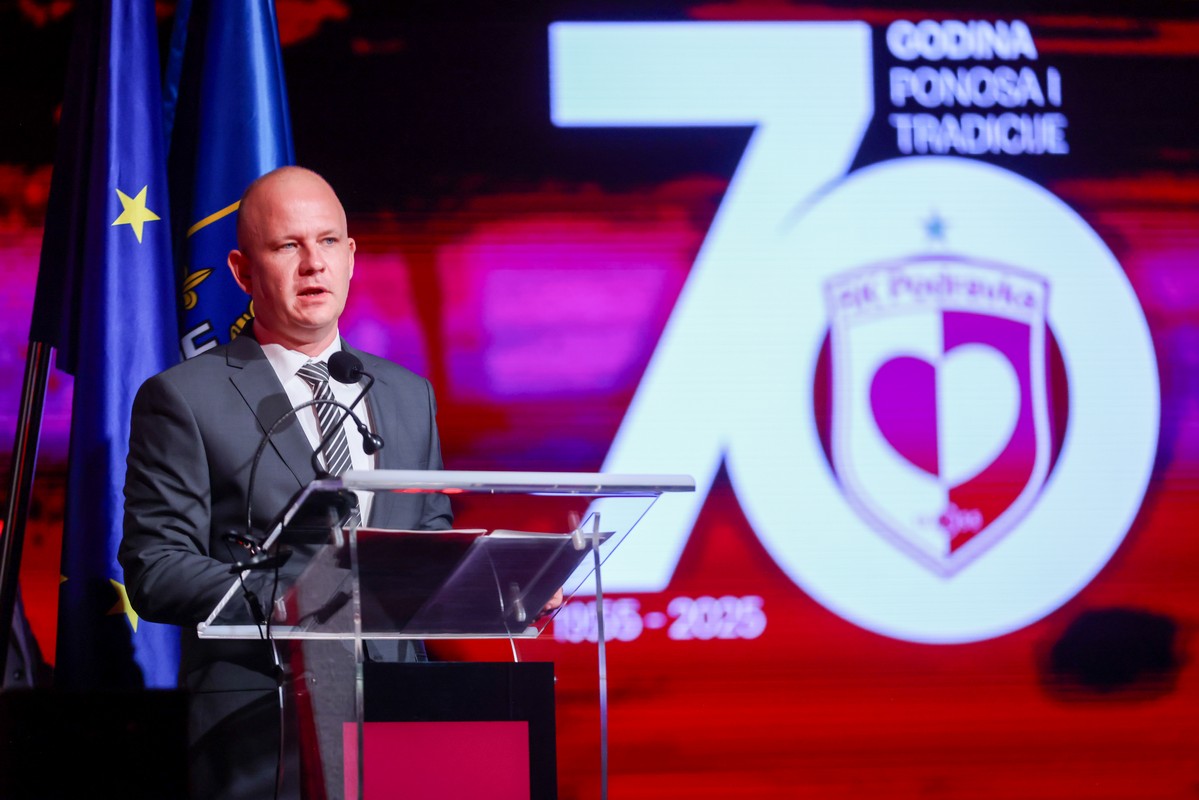 – U Europi egzistira 50 zemalja sa velikim brojem rukometnih klubova, kako muških, tako i ženskih. No, ovo je klub koji je 28 puta bio prvak svoje države i 27 puta pobjednik Kupa, osvajač Lige prvakinja te ima brojne druge odigrane utakmice u završnici europskih natjecanja. Europska rukometna federacija ponosna je što u našoj obitelj imamo jedan takav klub kakav je Rukometni klub Podravka. Isto tako, drago mi je da kompanija Podravka i Grad Koprivnica stoje iza Kluba. To je model kakav bi i ostali trebali slijediti. Imali ste sjajnu prošlost, velike igračice, velike trenere i velike sportske radnike te očekujem da će veliki rezultati doći u nadolazećem periodu. Europa vam se divi. Čestitam vam 70 godina kluba jer ovako velik jubilej je rijedak te vam čestitam ispred predsjednika EHF-a Michaela Wiederera – rekao je Božidar Đurković. Na kraju se obratio izaslanik predsjednika Republike Hrvatske i povjerenik predsjednika Republike Hrvatske za sport, Tomislav Paškvalin.