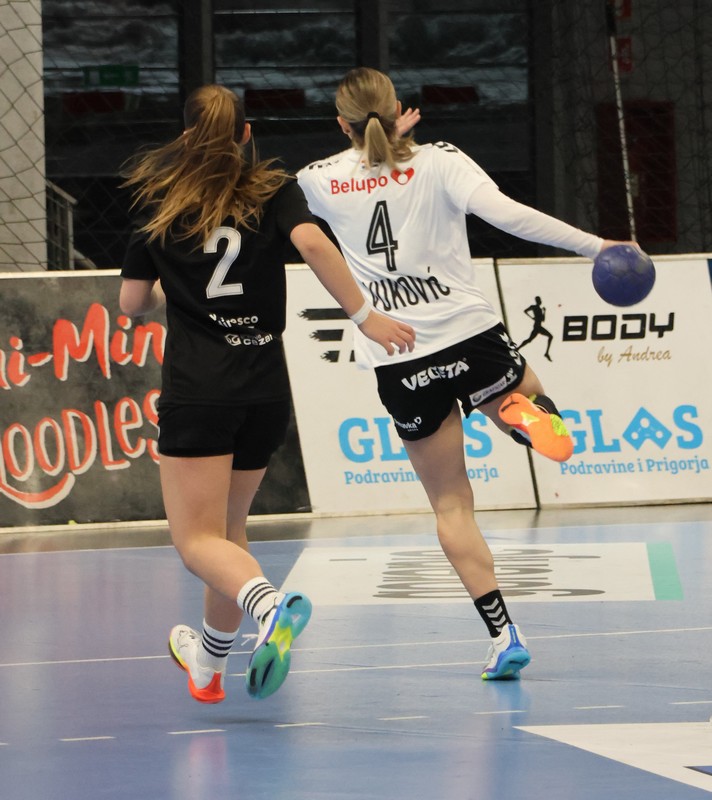 Na otvaranju drugog dijela glavni trener Ivica Obrvan rotira sastav te sve igračice dobivaju minutažu. Umjesto Lucije Bešen, na vratima je Antonia Tucaković, dok drugo poluvrijeme također započinju Aleksandra Olek na crti, Ivana Fratnik i Ana Pandža na vanjskim pozicijama te Katja Vuković i Kristina Dramac na krilima. Na poziciji desne vanjske većinu vremena je igrala Hannah Vuljak. Nakon izjednačenog početka, šest pogodaka vežu Hannah Vuljak, Kristina Dramac i Katja Vuković čime Podravkašice odlaze na više od 30 postignutih pogodaka – rezultat 12:32. Na vratima nove minute je upisala i Petra Marinović. U listu strijelkinja također se upisuju pivotkinja Aleksandra Olek i mlada Lucija Horvat. Pred kraj susreta još malo izjednačene igre, nekoliko pogodaka sa svake strane za konačnih 20:42.
