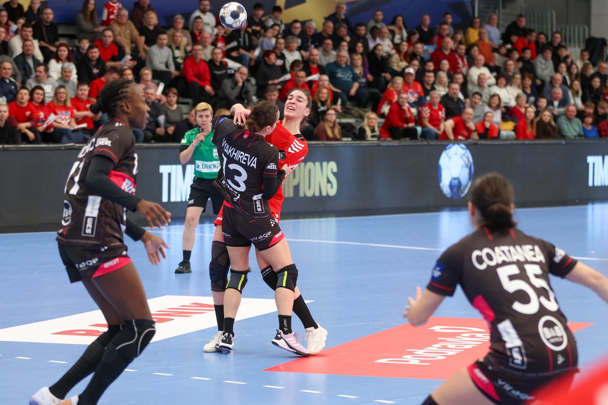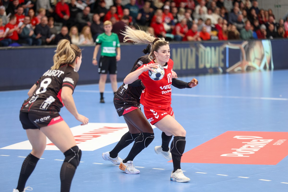 U nastavku, samo deset sekundi bilo je potrebno da se poveća stvoreno vodstvo. Nedugo nakon toga dvije odlične obrane Lucije Bešen zbog kojih francuska ekipa ostaje na 13 postignutih pogodaka. No, tada dolazi do pada u igri pa gostujuće igračice prvo postižu dva pogotka, da bi ubrzo vezale još tri i susretu vratile prvotnu neizvjesnost – rezultat 20:18. U tom periodu nije realizacija bila na potrebnom nivou. U 38. minuti, uz kontinuirano glasno navijanje koprivničke publike, dodatan vjetar u leđa, s obranom sedmerca, daje Lucija Bešen. Također treba istaknuti kako se tijekom cijele utakmice na poziciji desnog krila sjajno snalazila Hannah Vuljak. Nakon još jednog pogotka Matee Pletikosić, ovaj put na početku 45. minute, Onacia Ondono upravo na njoj radi iznimno težak prekršaj zbog čega dobiva izravni crveni karton. Nažalost, u posljednjoj četvrtini, pri čemu treba u obzir uzeti i suženi roster, dolazi do pada u igri, što koristi gostujuća ekipa koja postiže tri pogotka. Sve to dovelo je do neizvjesne dvije minute u koje se ulazi s rezultatom 29:30. U posljednjih tridesetak sekundi vrijeme nije zaustavljano, već je kontinuirano teklo. Samim time, iako su bile u napadu, Podravkašice nažalost ne postižu pogodak i utakmica završava rezultatom 30:31.