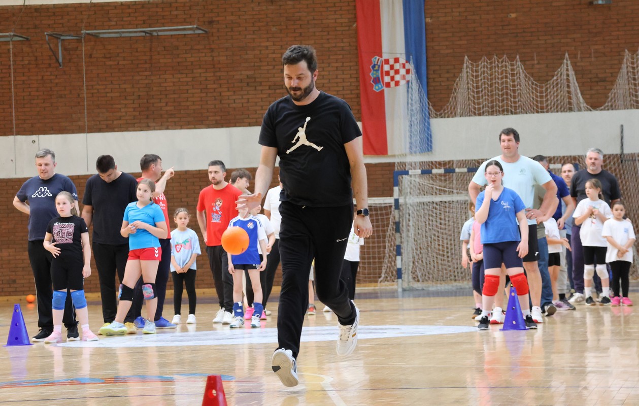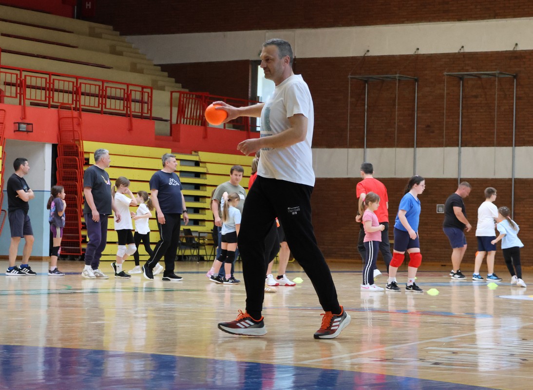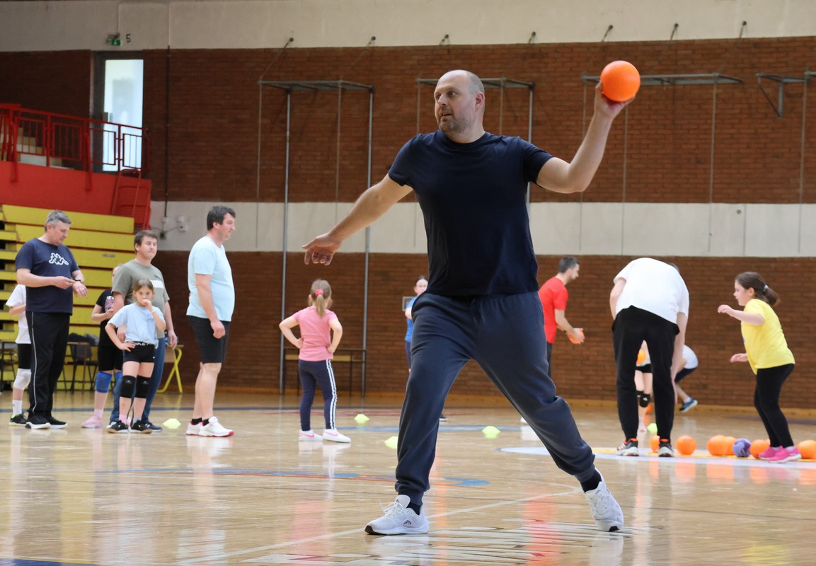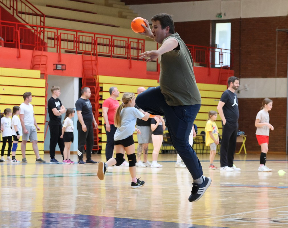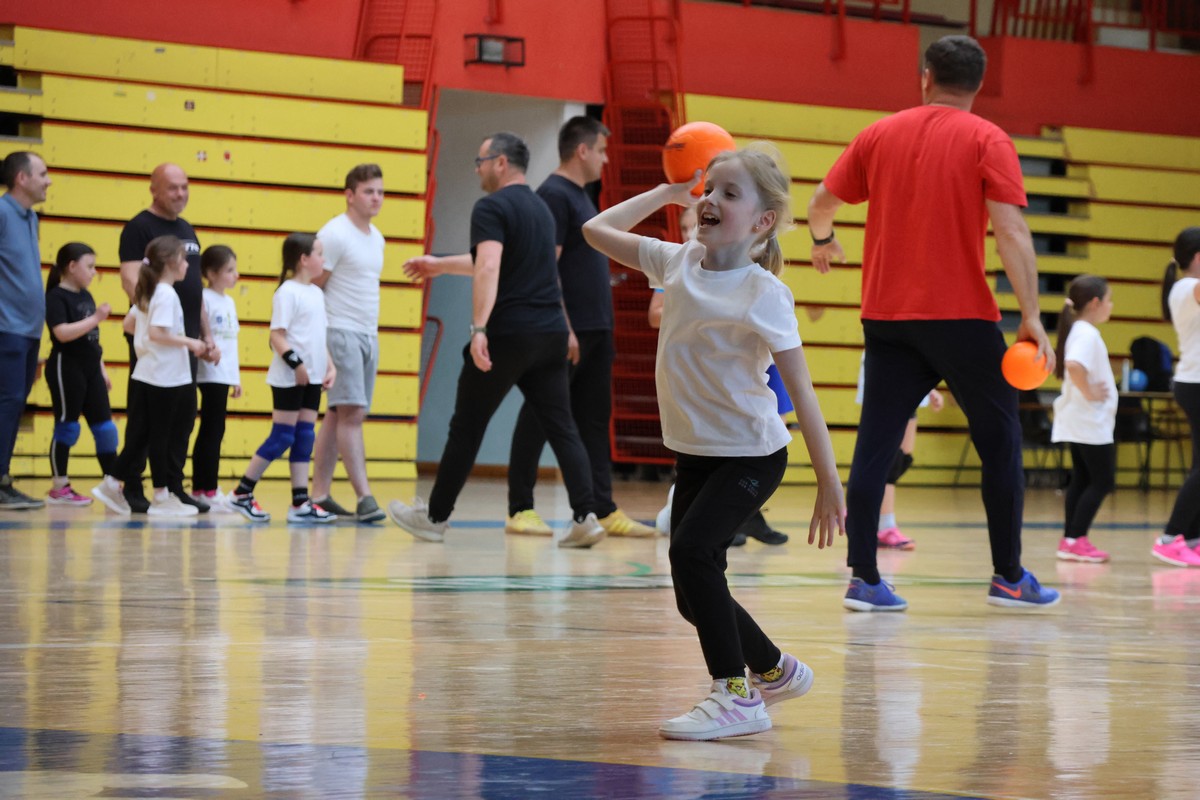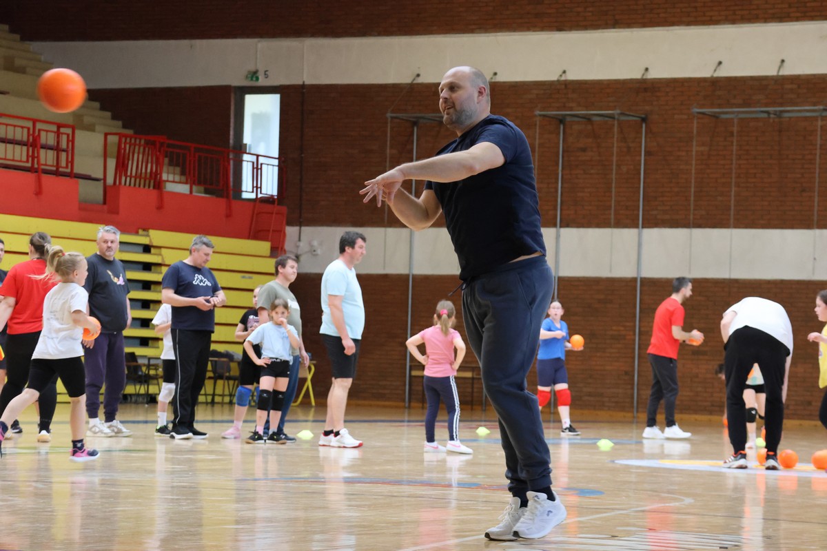 U sklopu projekta Dadathlon, inicijative koju provodi Hrvatska udruga tata, a koja promiče aktivno i kvalitetno provođenje vremena roditelja i djece, u sportskoj dvorani Srednje škole Koprivnica jučer je održan poseban zajednički trening naših U8 i U10 rukometašica zajedno s njihovim očevima, braćom i obiteljima.