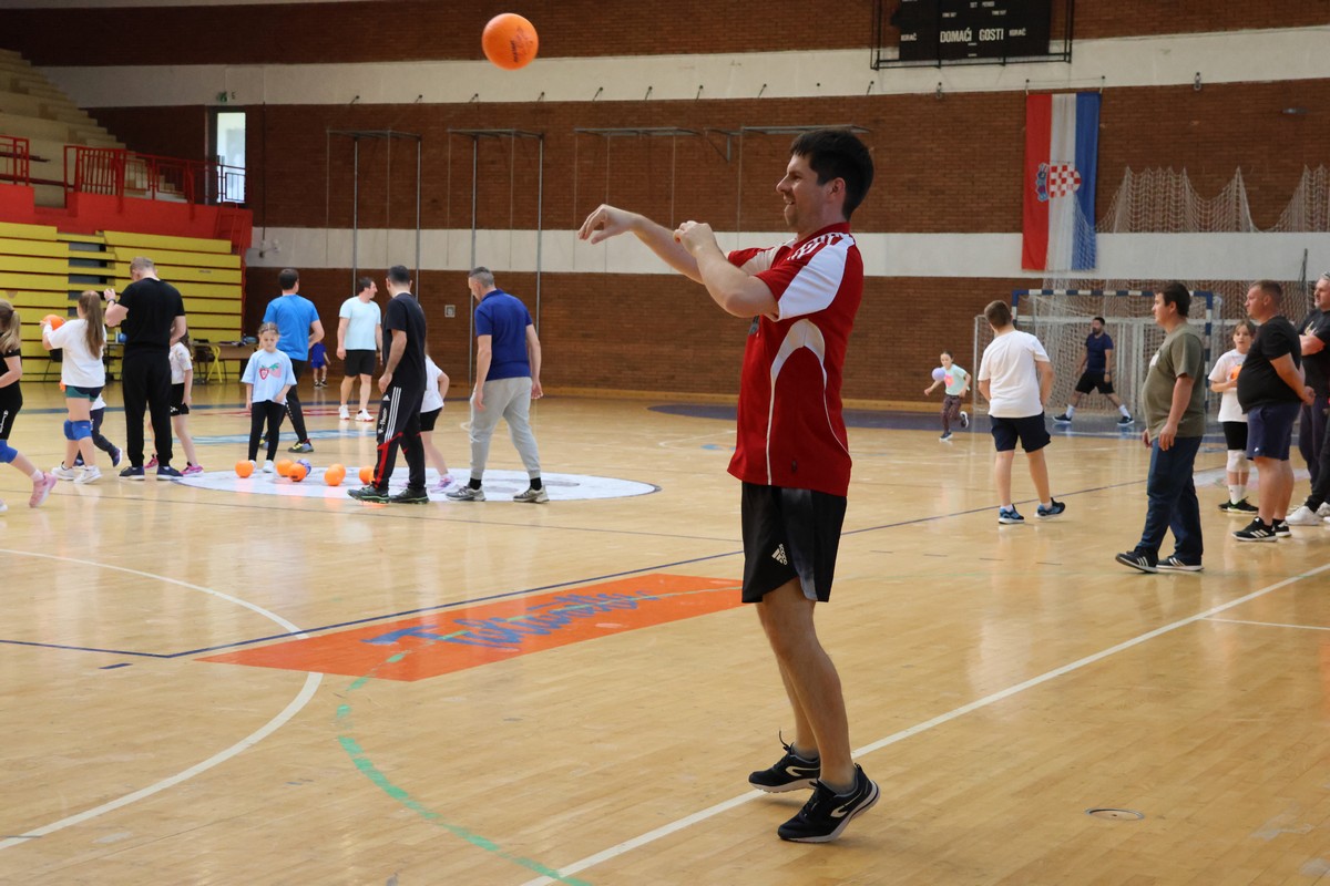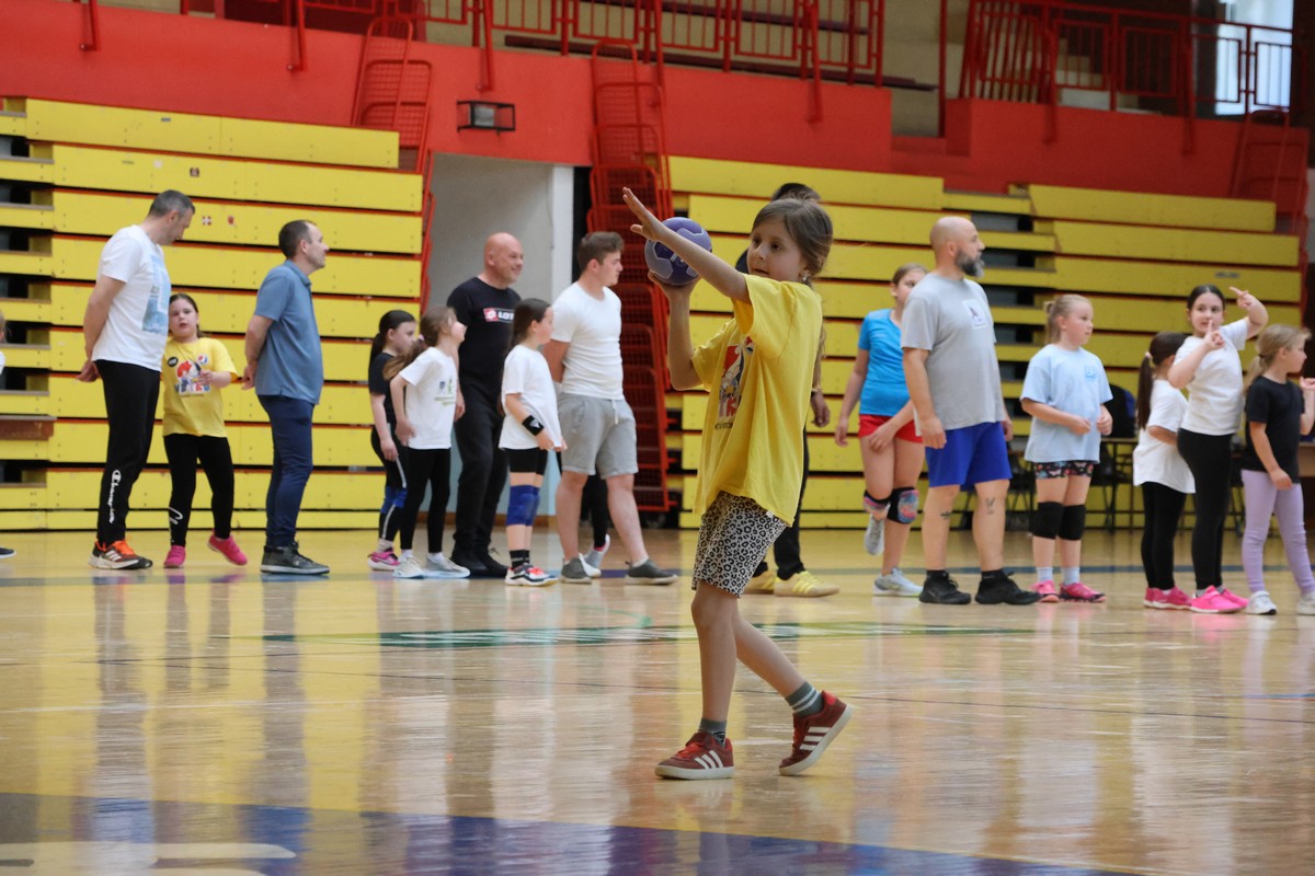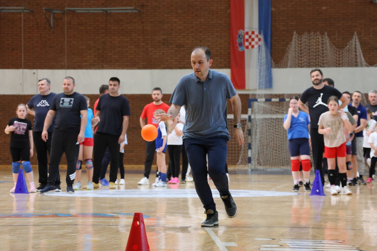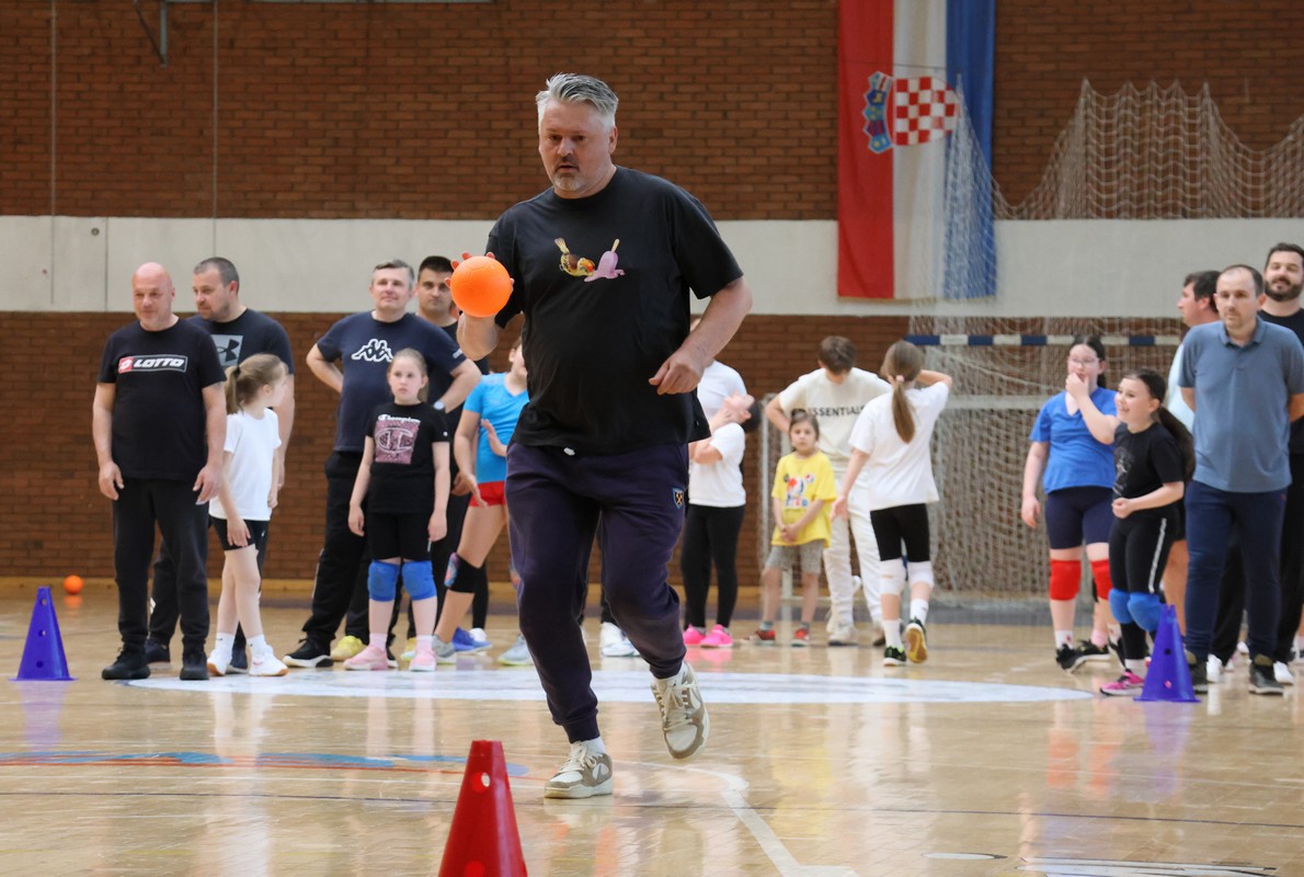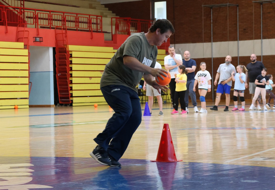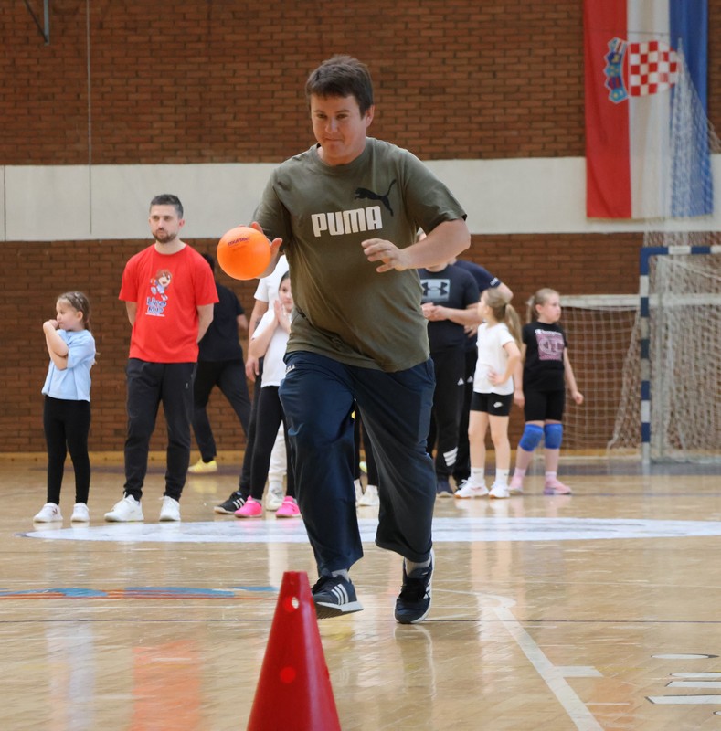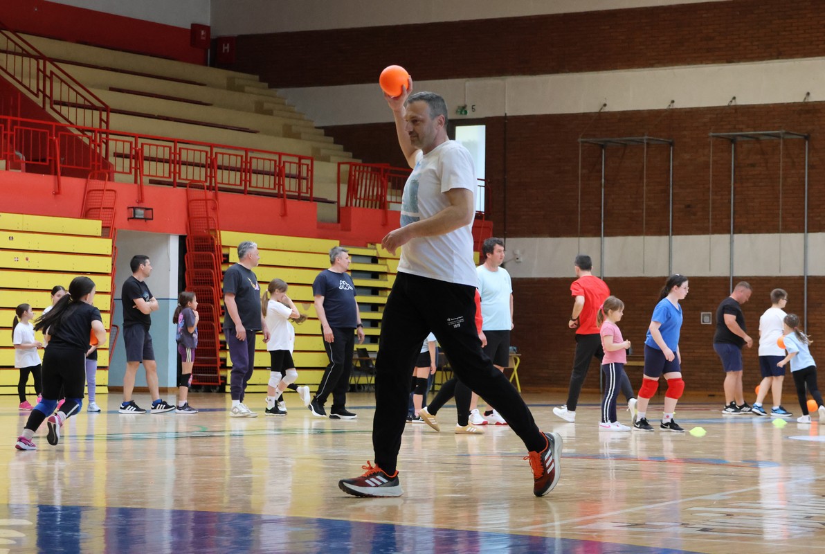 U sklopu projekta Dadathlon, inicijative koju provodi Hrvatska udruga tata, a koja promiče aktivno i kvalitetno provođenje vremena roditelja i djece, u sportskoj dvorani Srednje škole Koprivnica jučer je održan poseban zajednički trening naših U8 i U10 rukometašica zajedno s njihovim očevima, braćom i obiteljima.