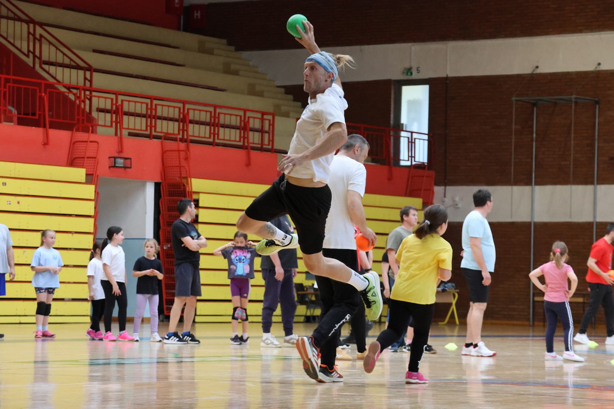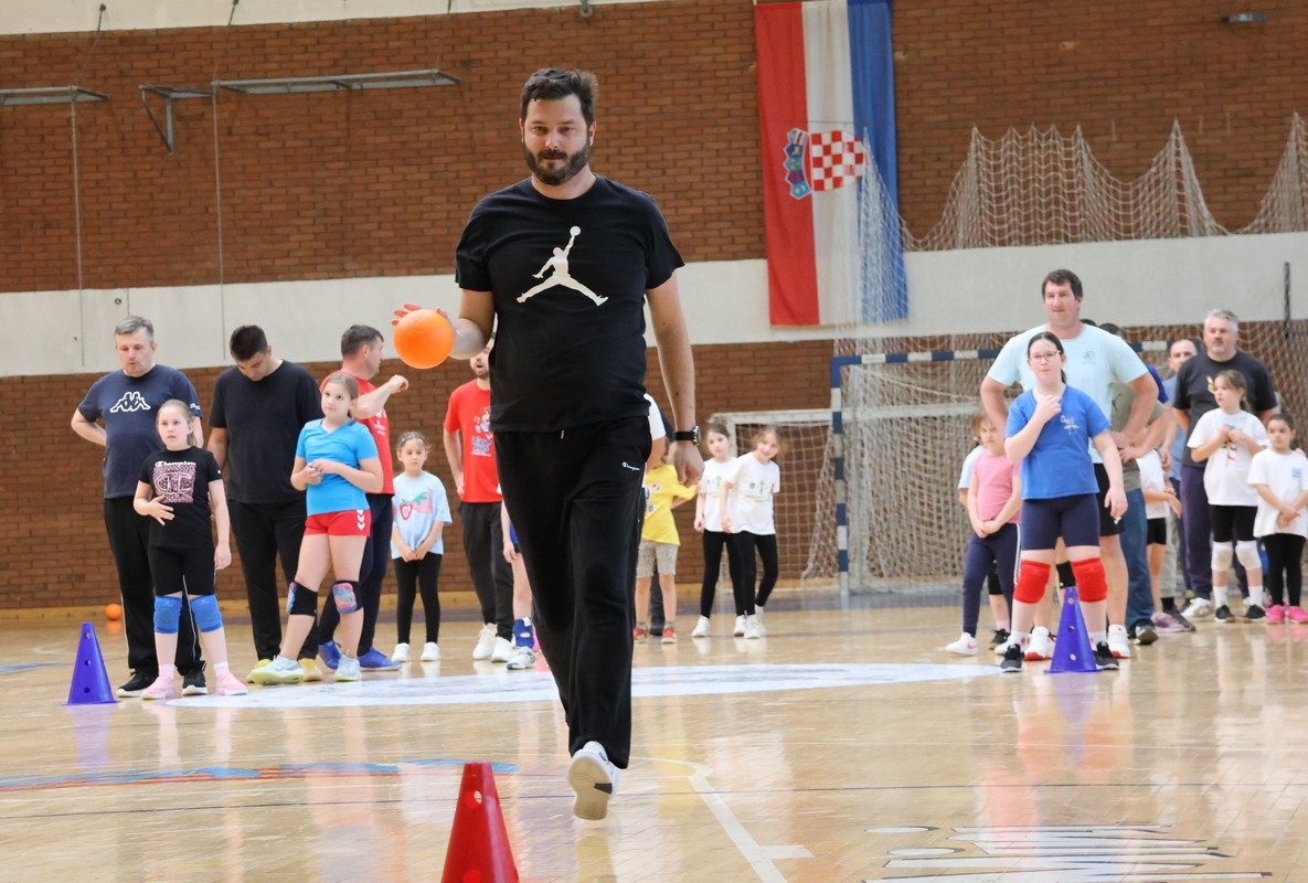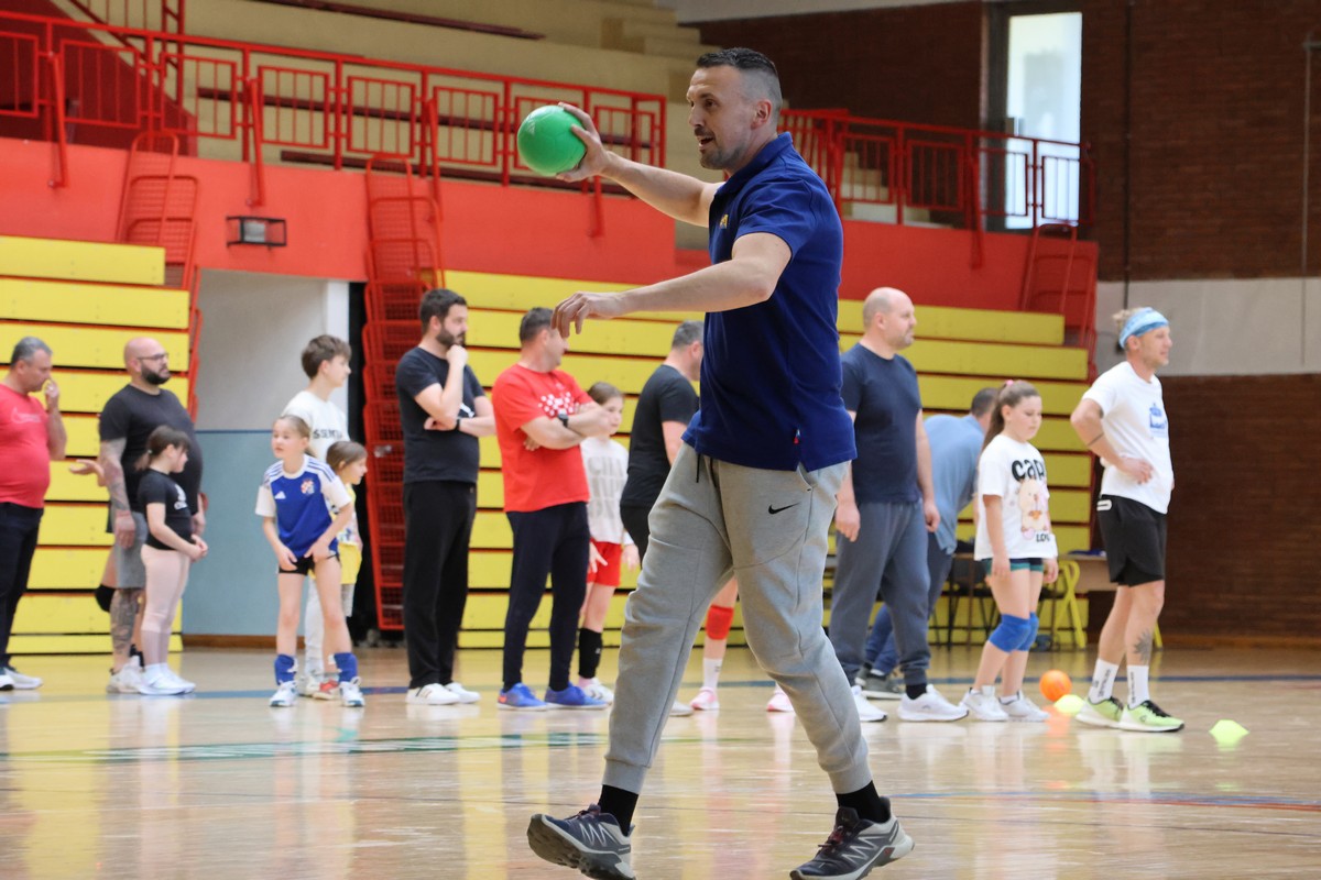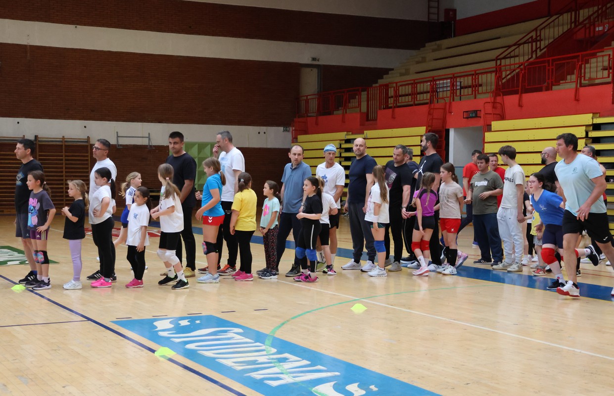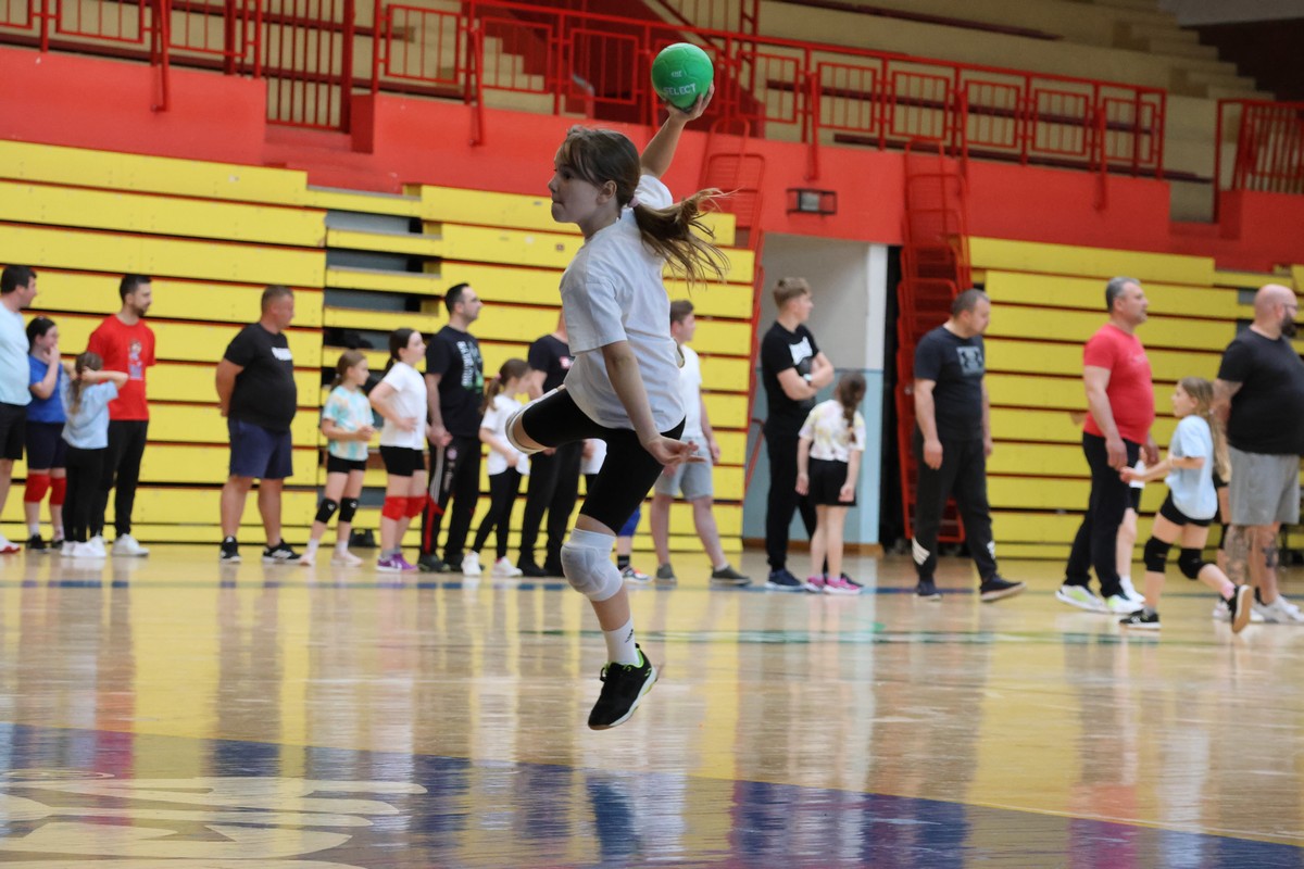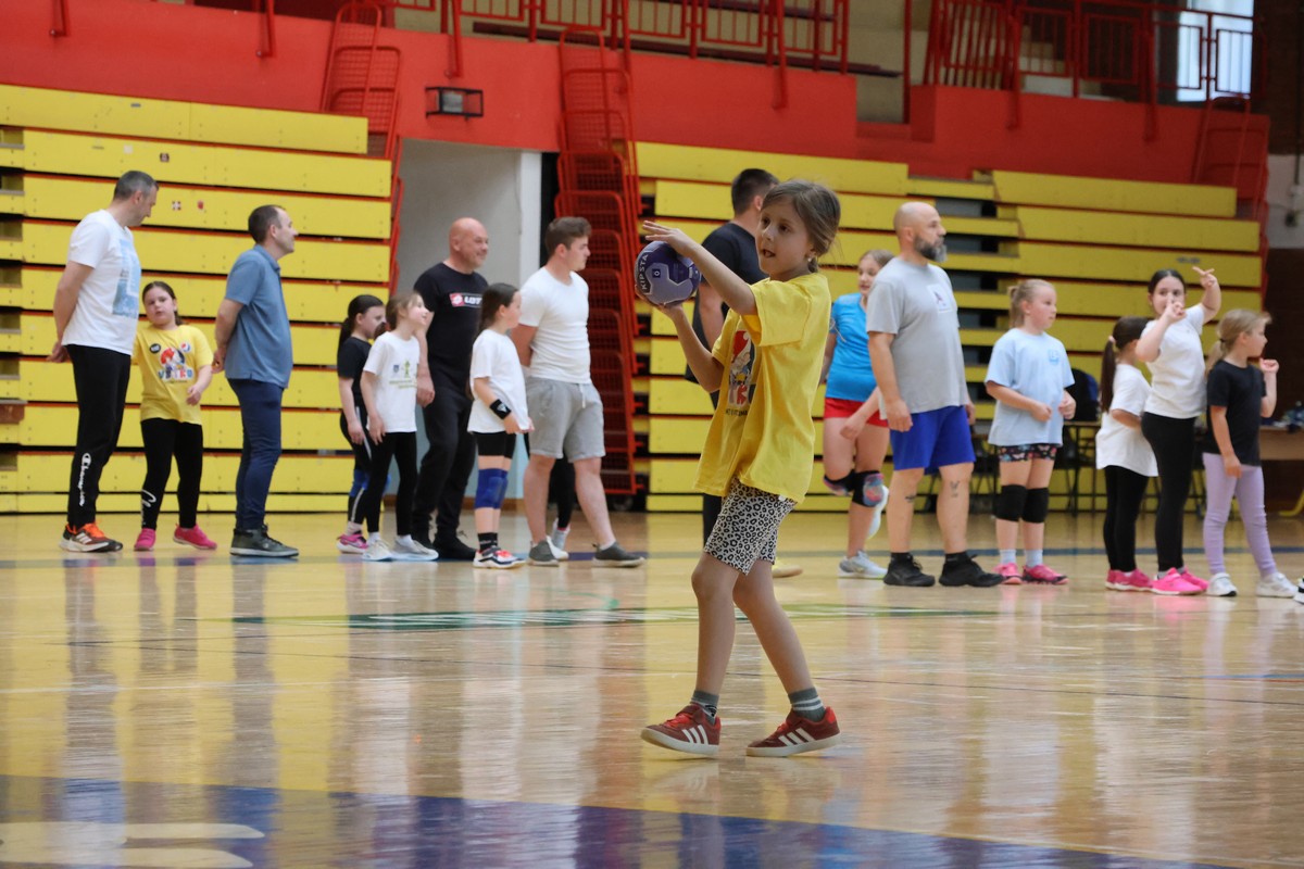U sklopu projekta Dadathlon, inicijative koju provodi Hrvatska udruga tata, a koja promiče aktivno i kvalitetno provođenje vremena roditelja i djece, u sportskoj dvorani Srednje škole Koprivnica jučer je održan poseban zajednički trening naših U8 i U10 rukometašica zajedno s njihovim očevima, braćom i obiteljima.