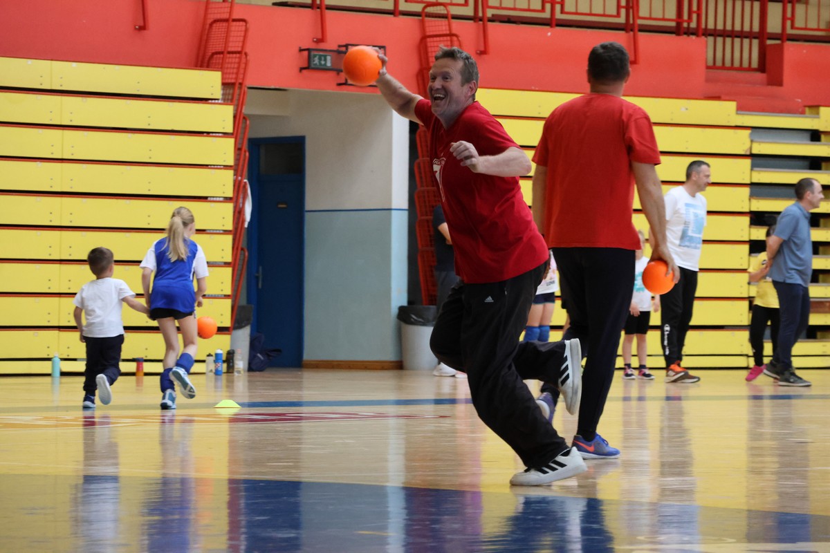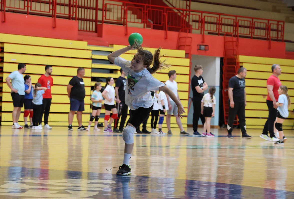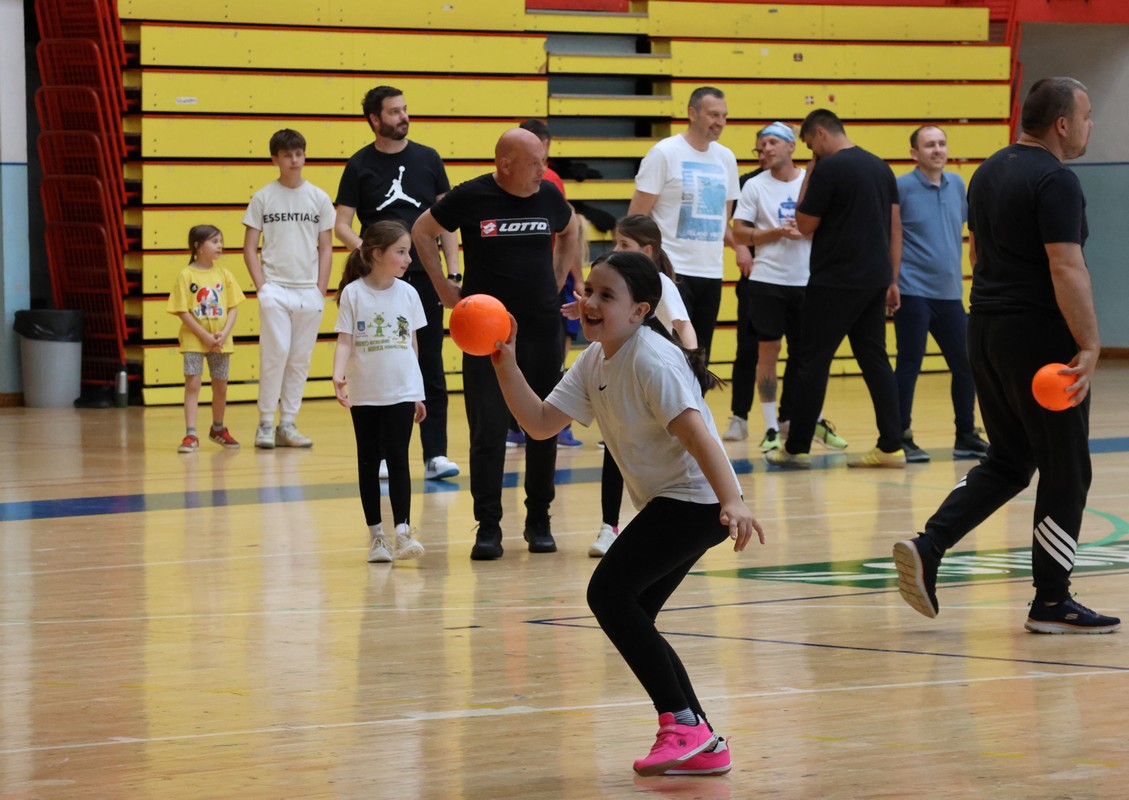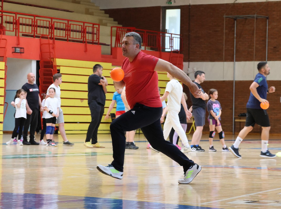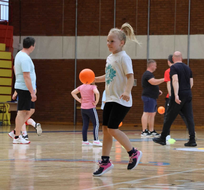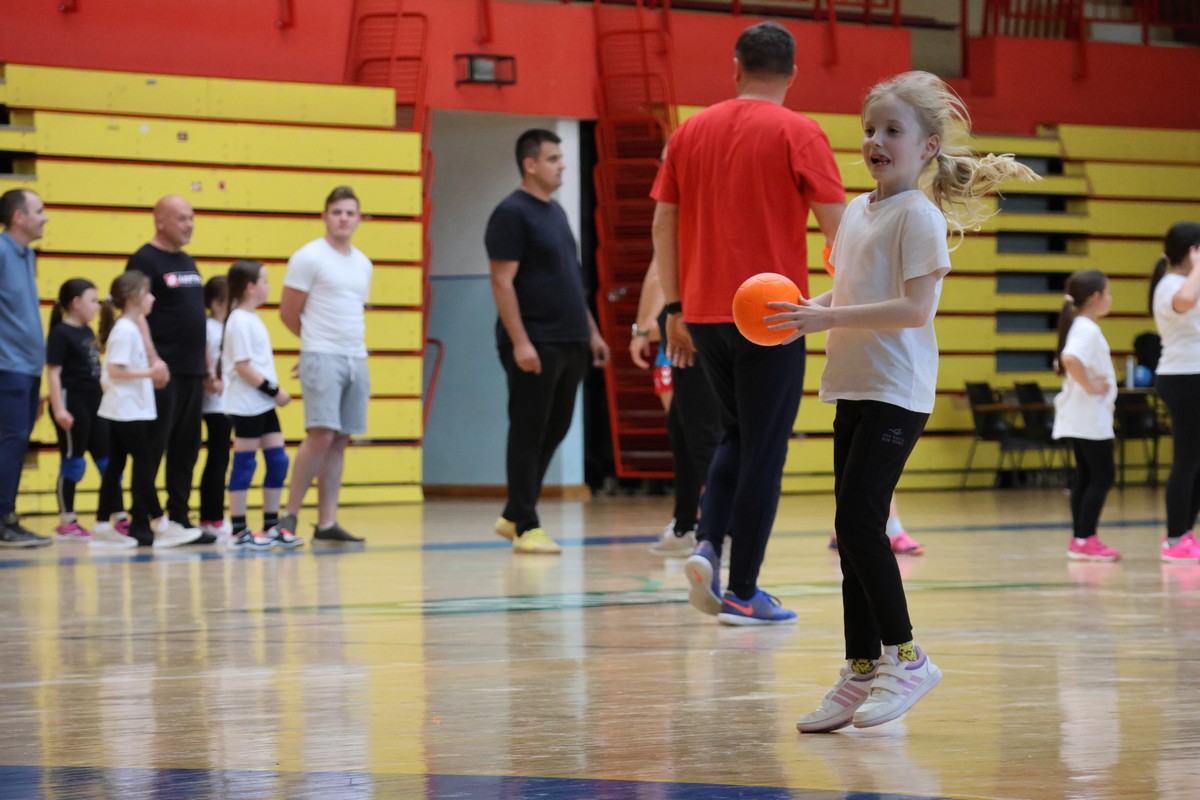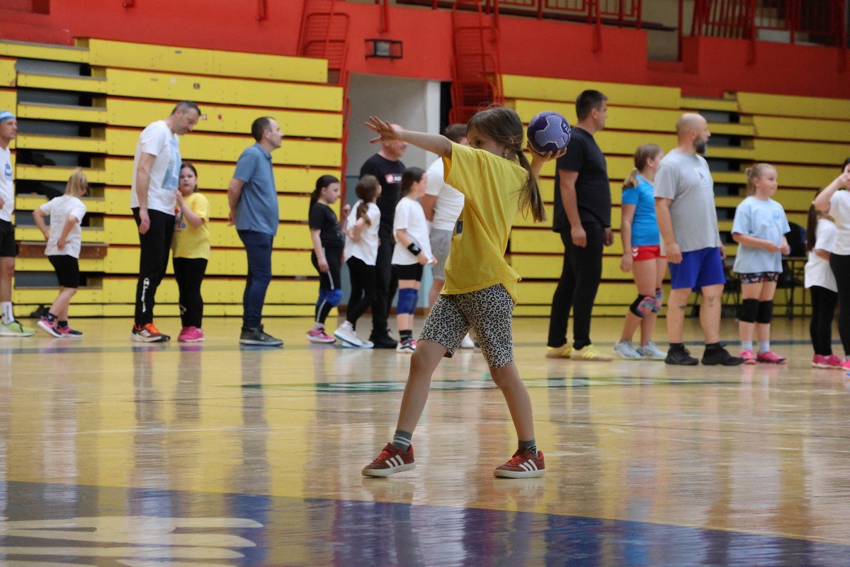 U sklopu projekta Dadathlon, inicijative koju provodi Hrvatska udruga tata, a koja promiče aktivno i kvalitetno provođenje vremena roditelja i djece, u sportskoj dvorani Srednje škole Koprivnica jučer je održan poseban zajednički trening naših U8 i U10 rukometašica zajedno s njihovim očevima, braćom i obiteljima.