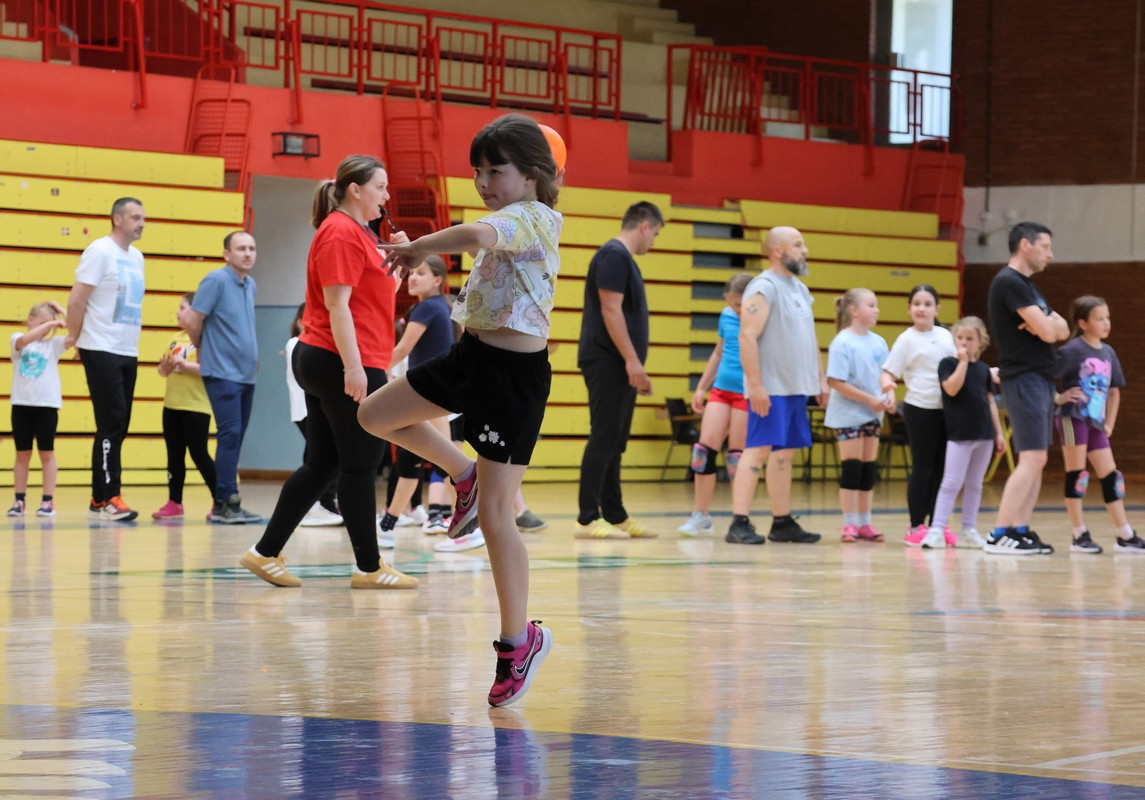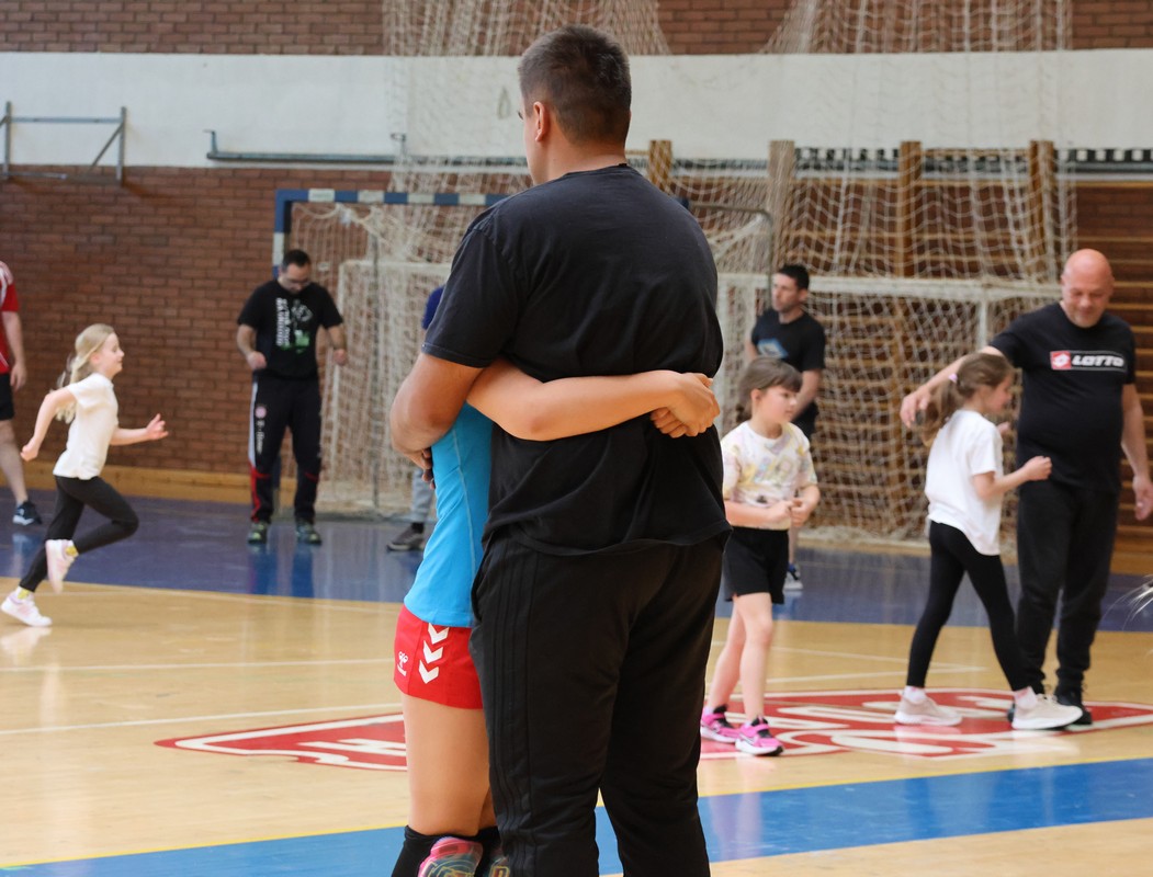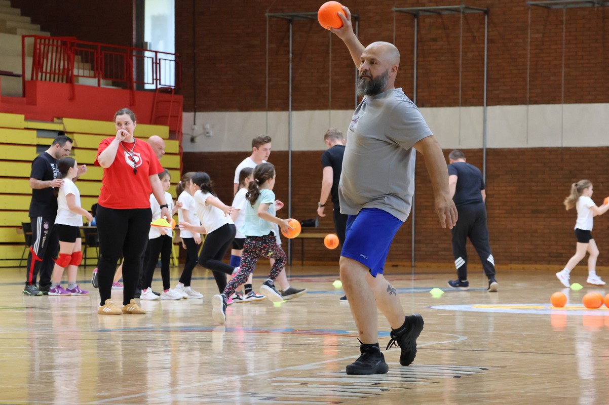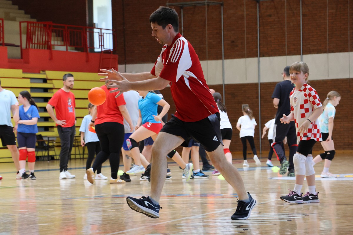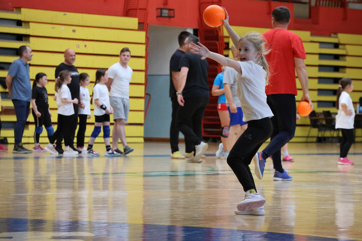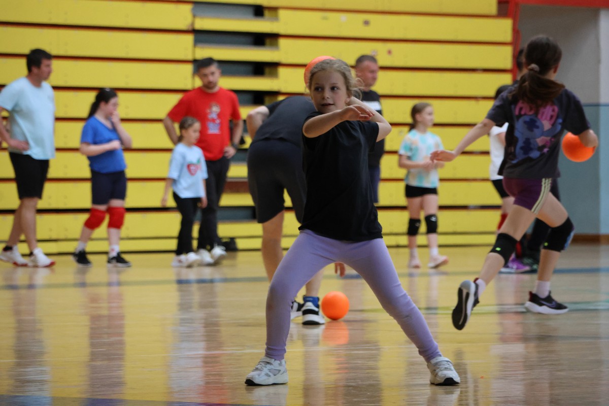 U sklopu projekta Dadathlon, inicijative koju provodi Hrvatska udruga tata, a koja promiče aktivno i kvalitetno provođenje vremena roditelja i djece, u sportskoj dvorani Srednje škole Koprivnica jučer je održan poseban zajednički trening naših U8 i U10 rukometašica zajedno s njihovim očevima, braćom i obiteljima.