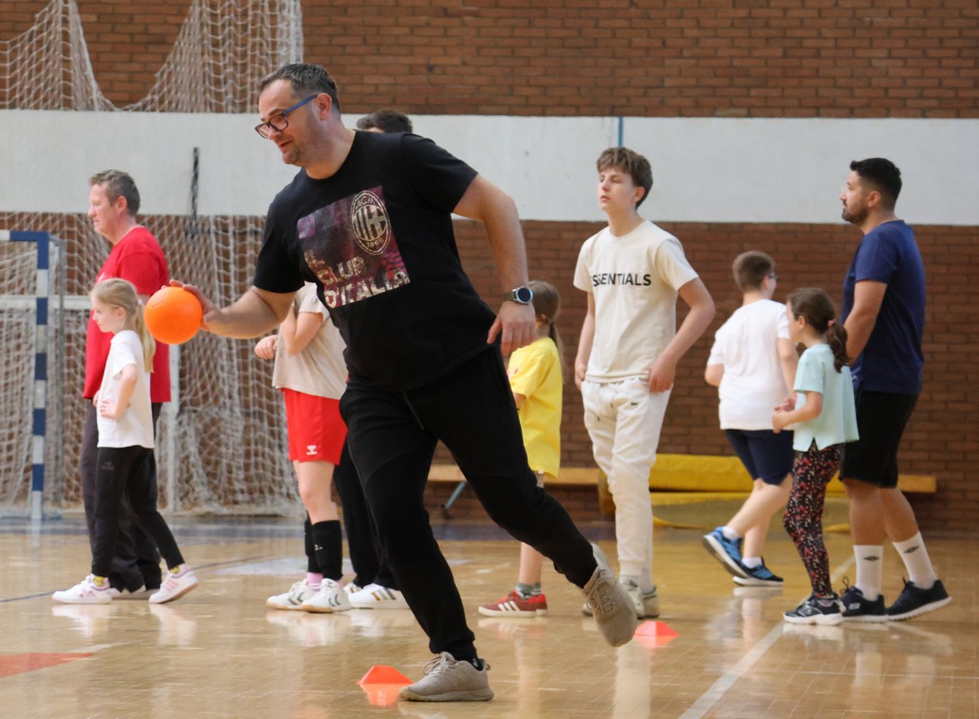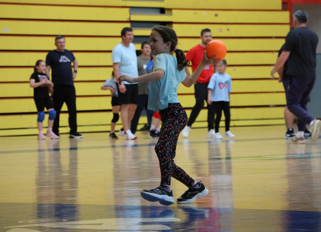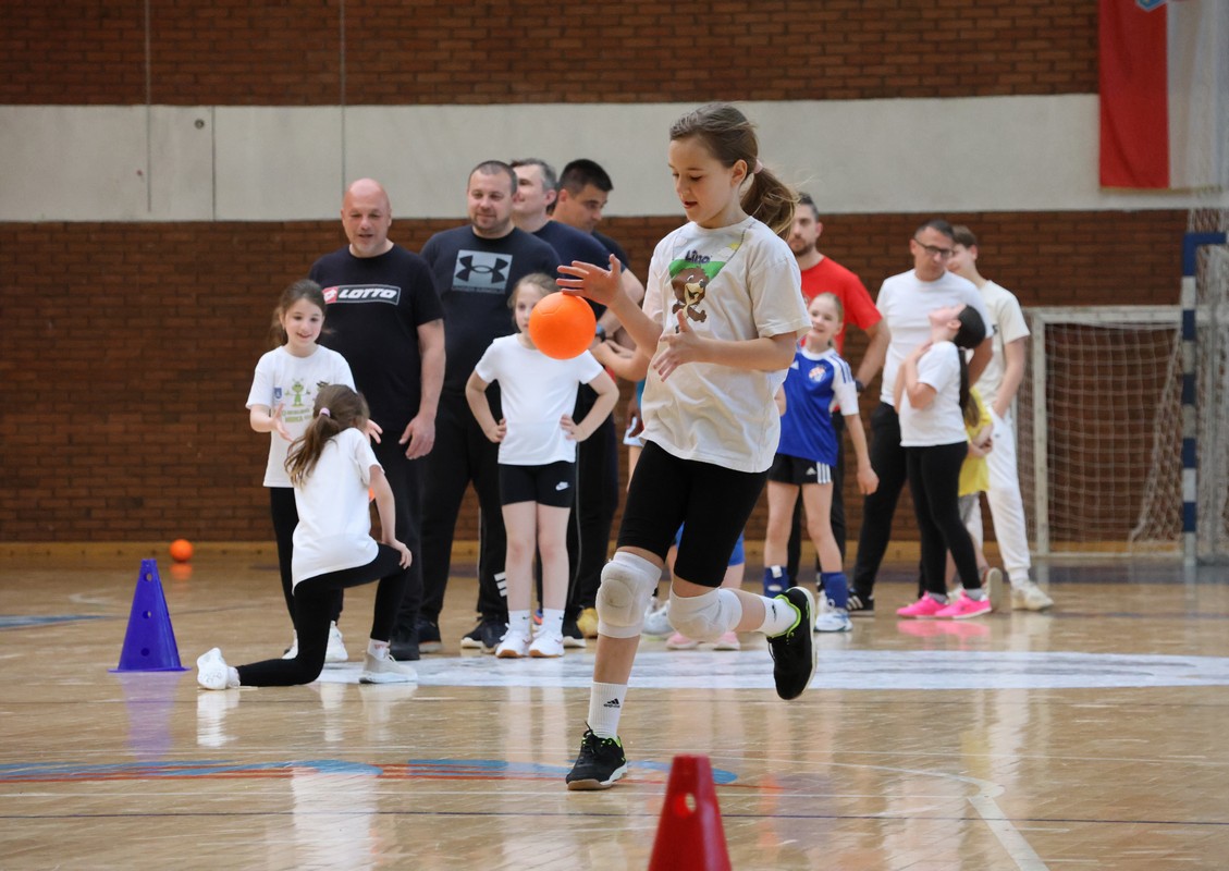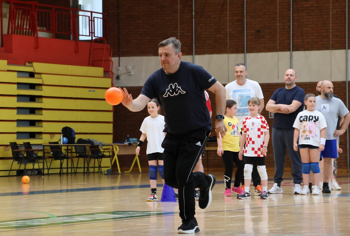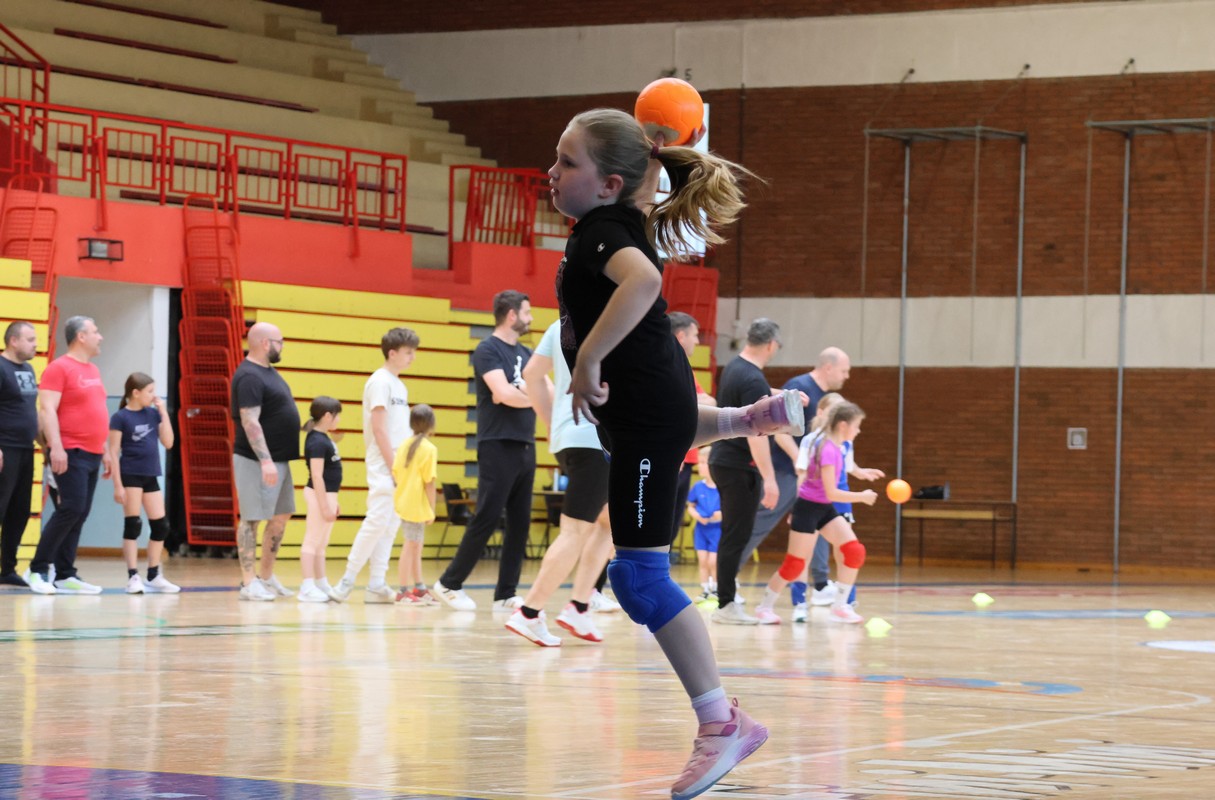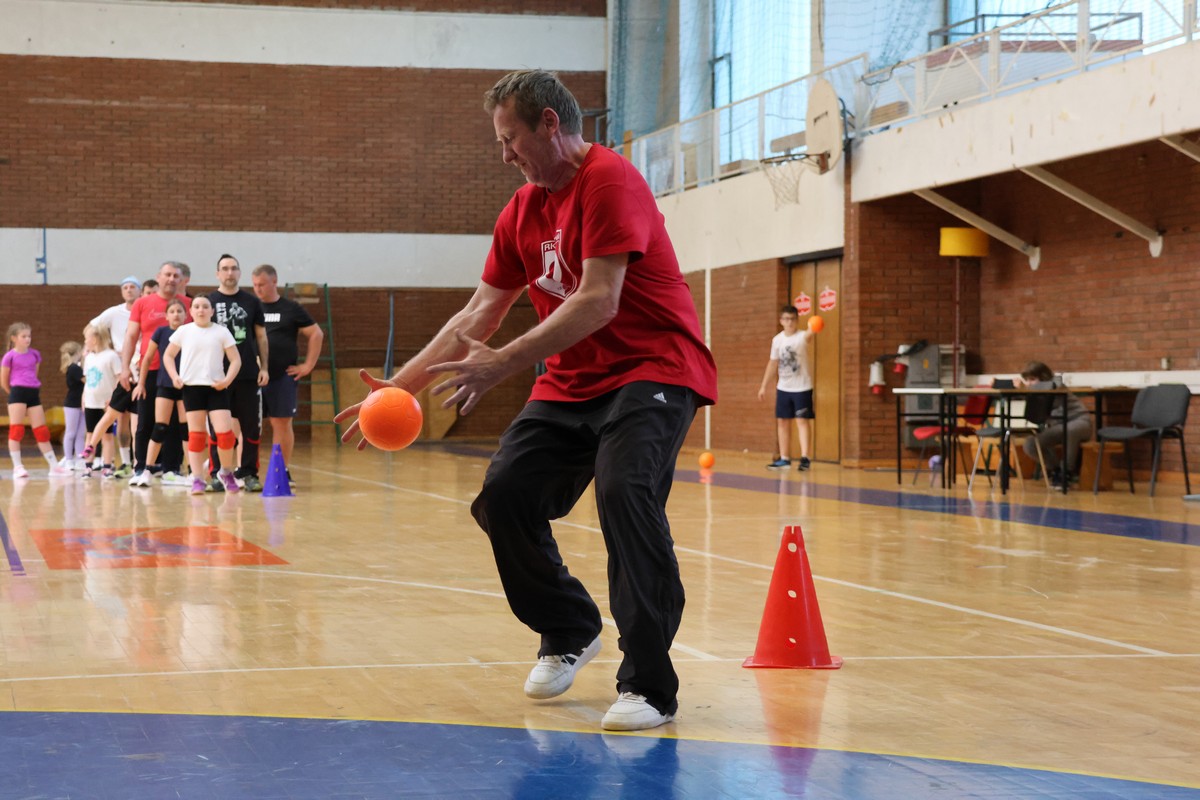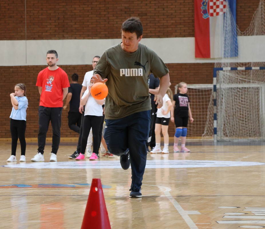 U sklopu projekta Dadathlon, inicijative koju provodi Hrvatska udruga tata, a koja promiče aktivno i kvalitetno provođenje vremena roditelja i djece, u sportskoj dvorani Srednje škole Koprivnica jučer je održan poseban zajednički trening naših U8 i U10 rukometašica zajedno s njihovim očevima, braćom i obiteljima.