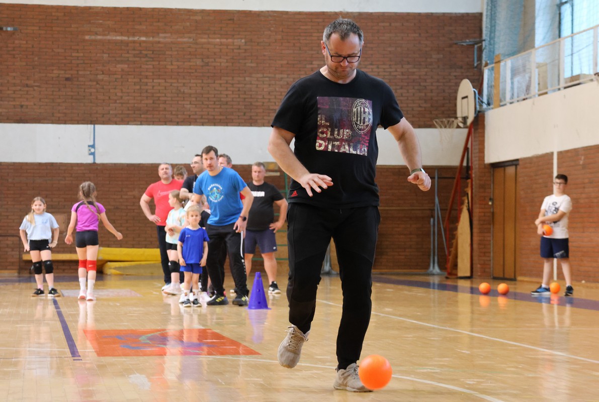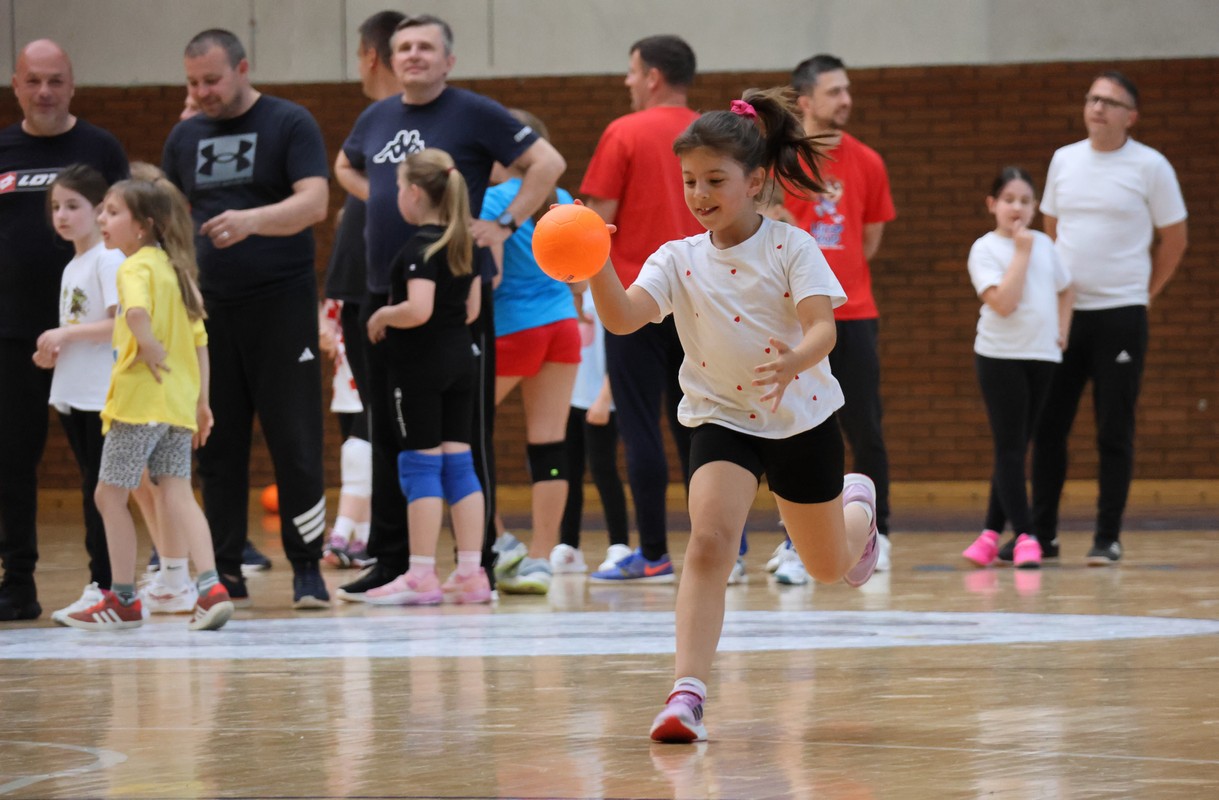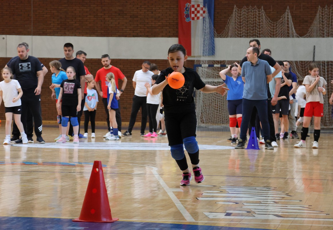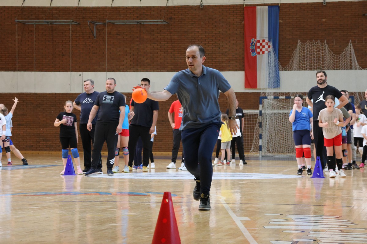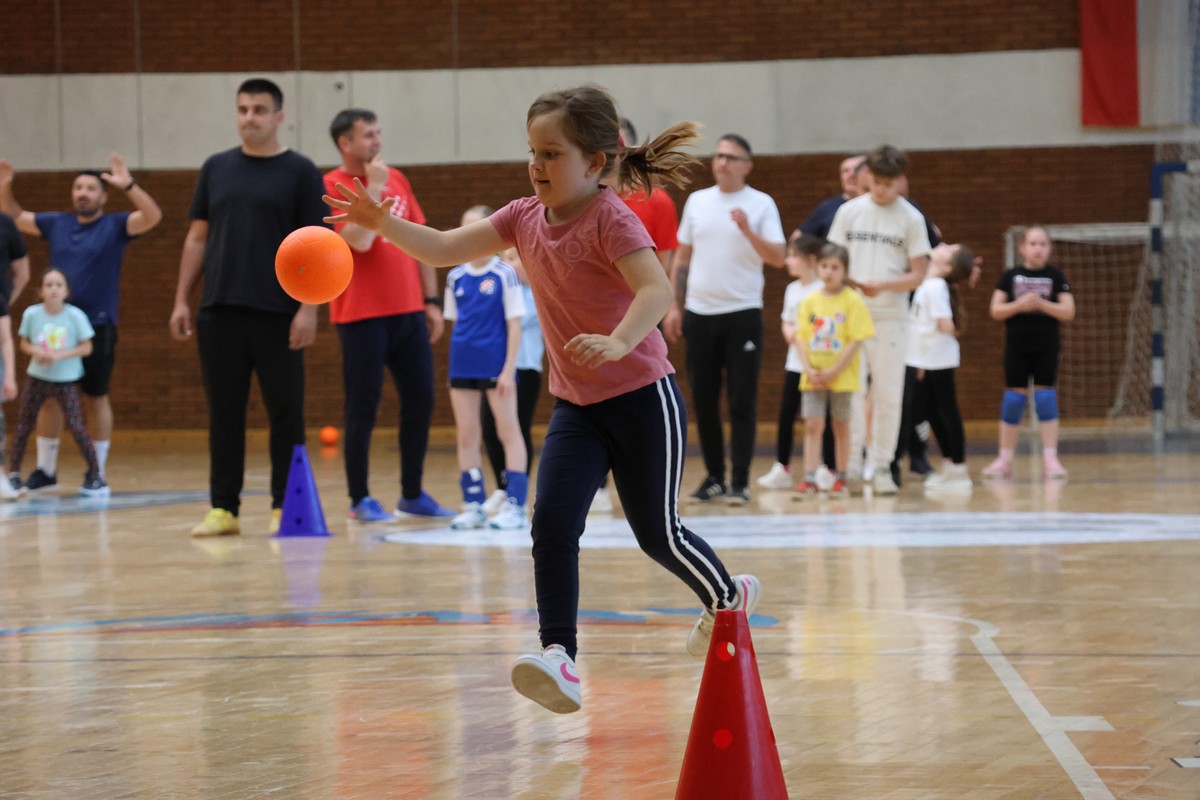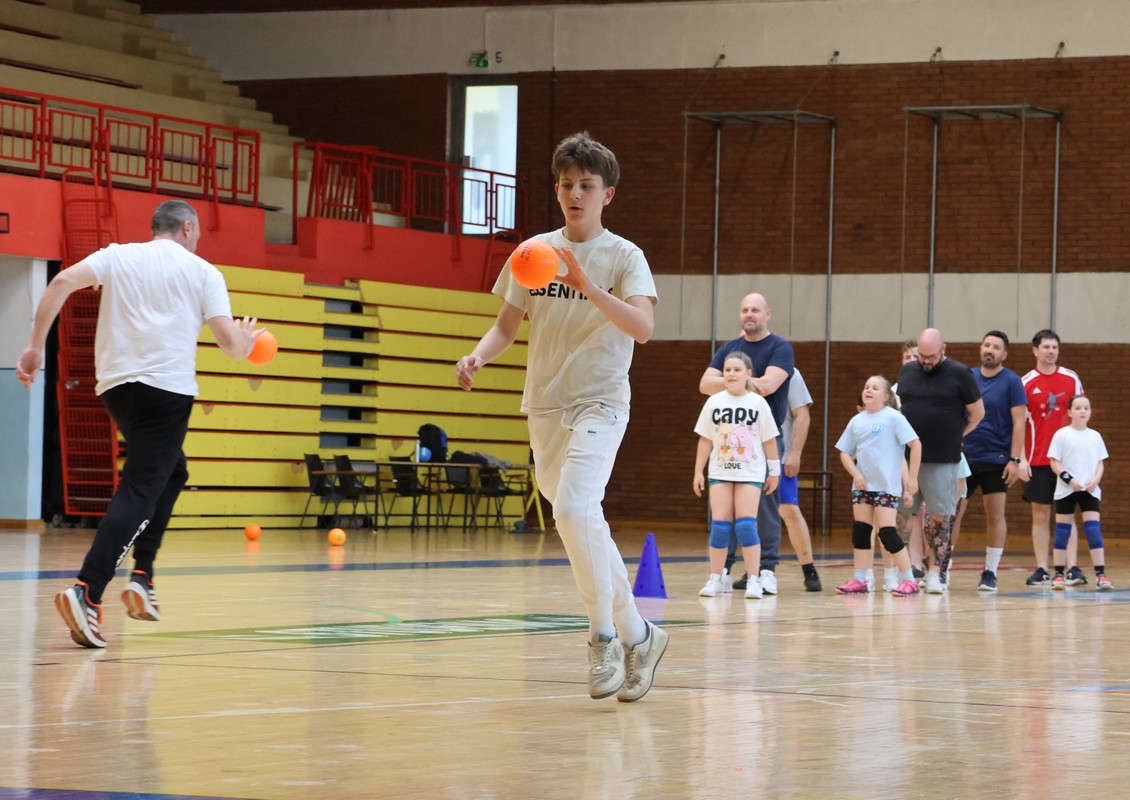 U sklopu projekta Dadathlon, inicijative koju provodi Hrvatska udruga tata, a koja promiče aktivno i kvalitetno provođenje vremena roditelja i djece, u sportskoj dvorani Srednje škole Koprivnica jučer je održan poseban zajednički trening naših U8 i U10 rukometašica zajedno s njihovim očevima, braćom i obiteljima.