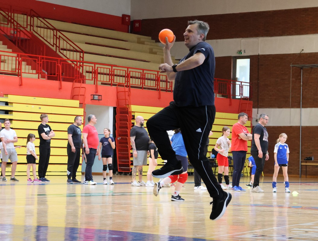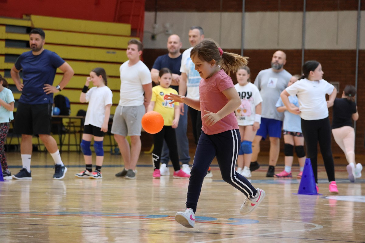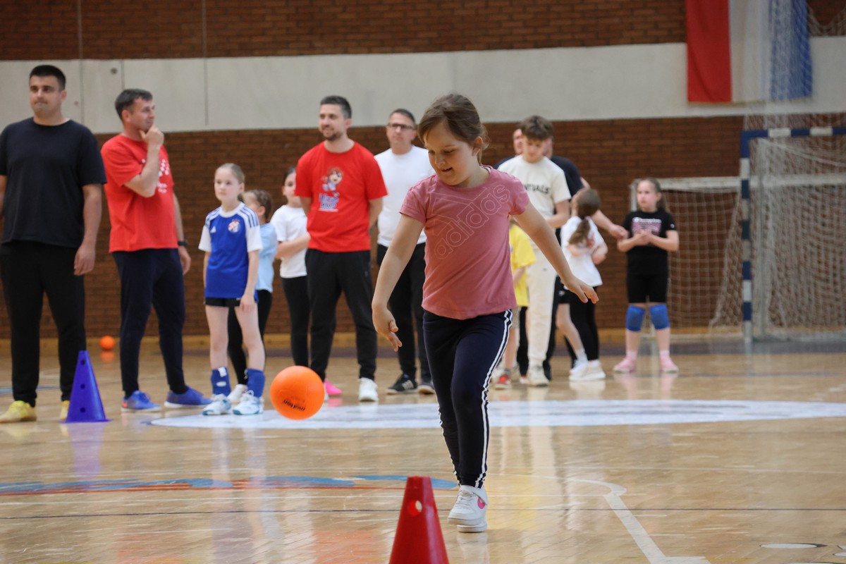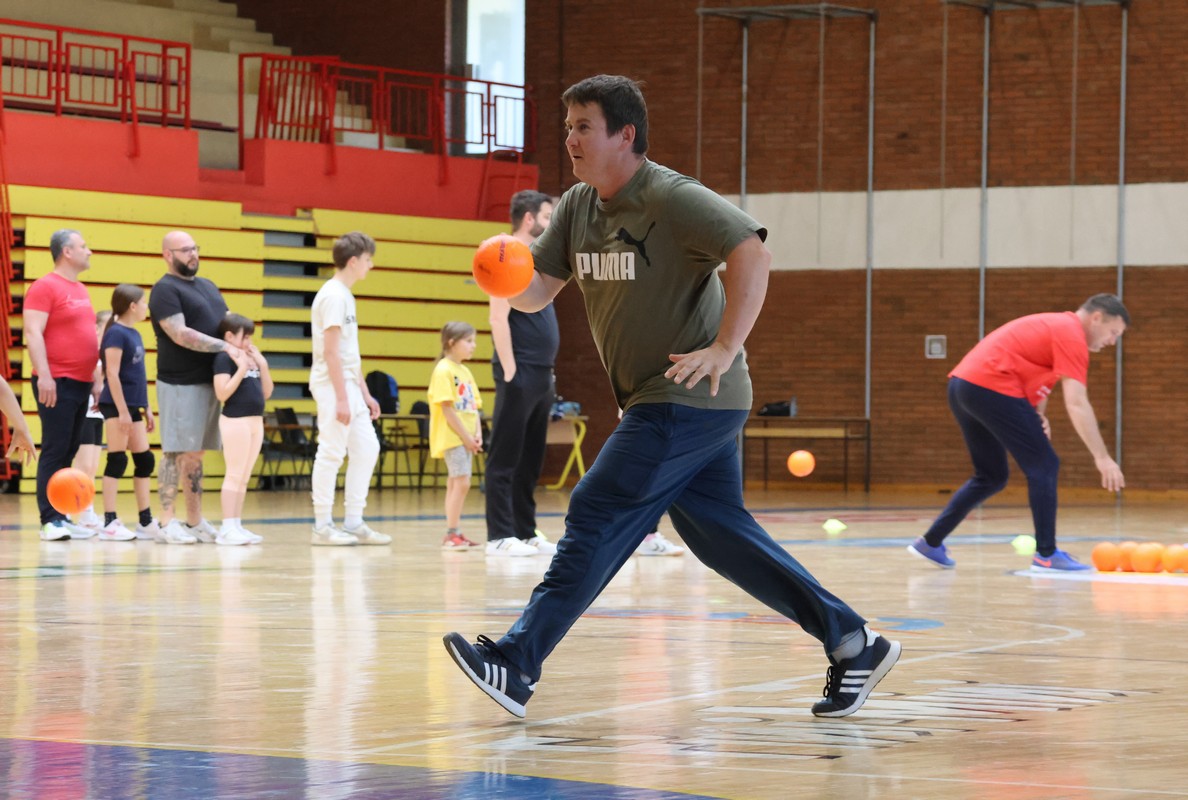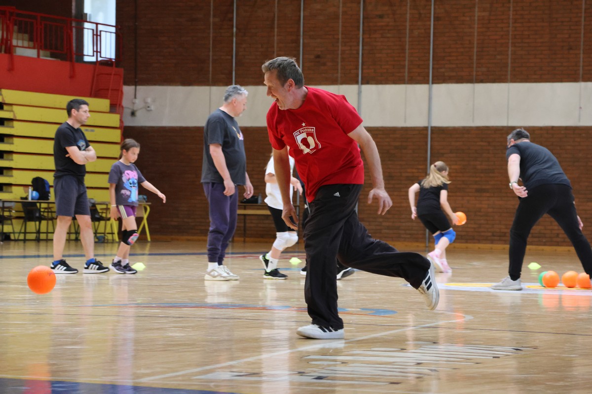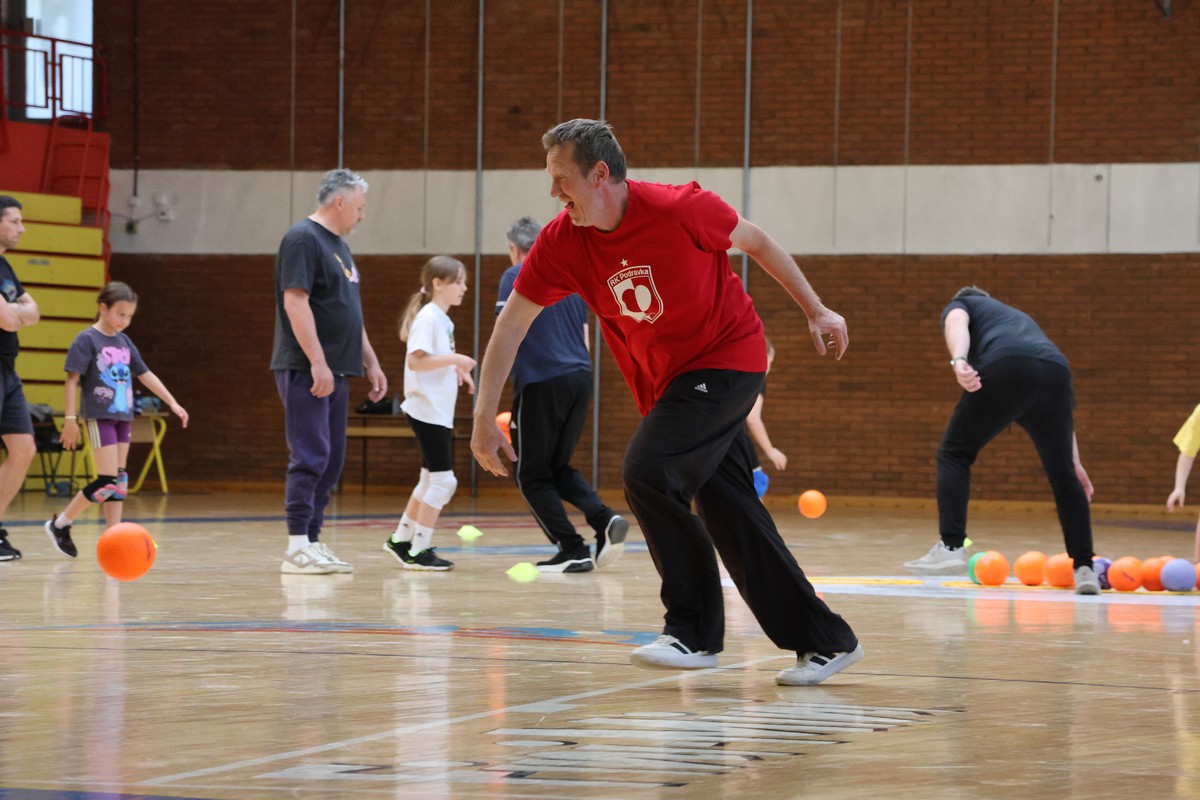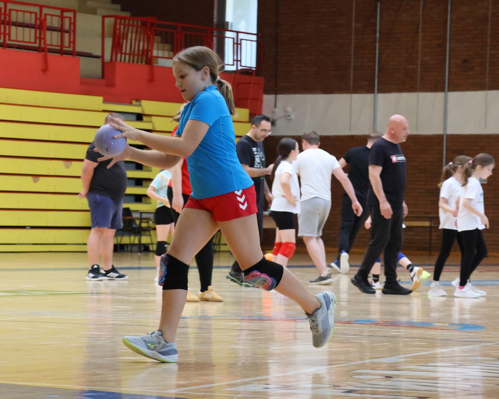 U sklopu projekta Dadathlon, inicijative koju provodi Hrvatska udruga tata, a koja promiče aktivno i kvalitetno provođenje vremena roditelja i djece, u sportskoj dvorani Srednje škole Koprivnica jučer je održan poseban zajednički trening naših U8 i U10 rukometašica zajedno s njihovim očevima, braćom i obiteljima.