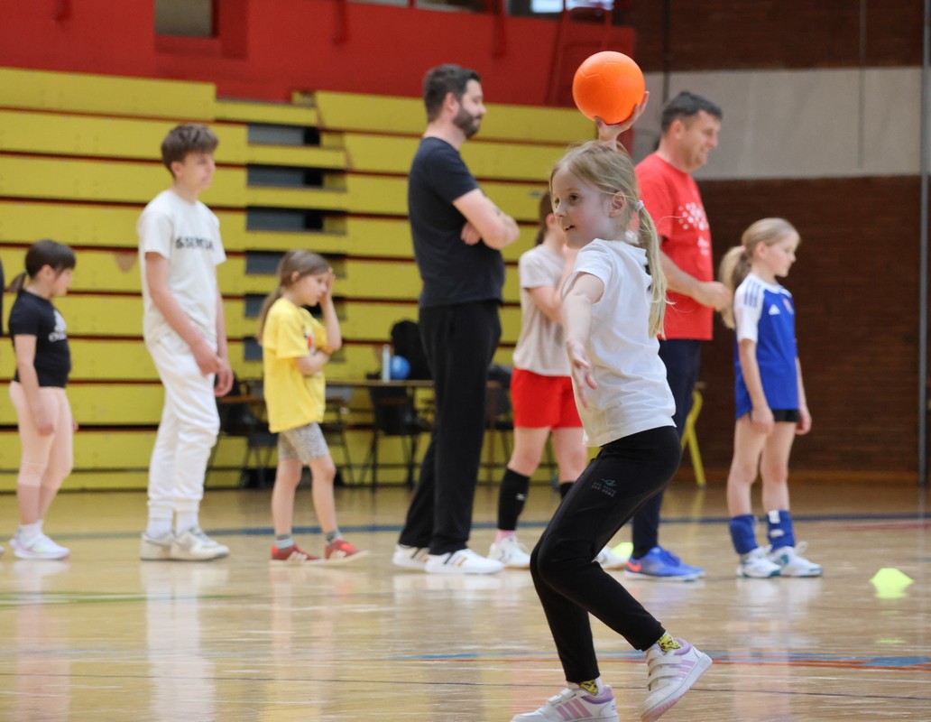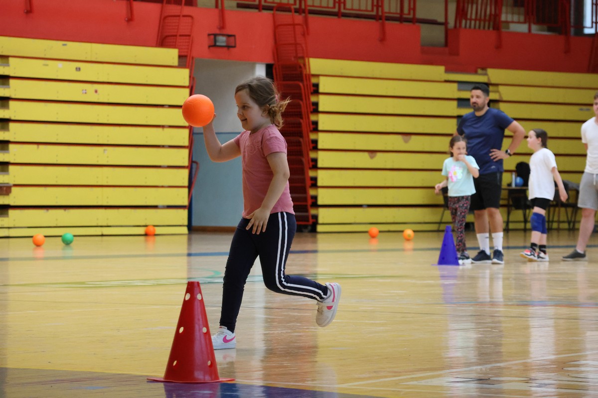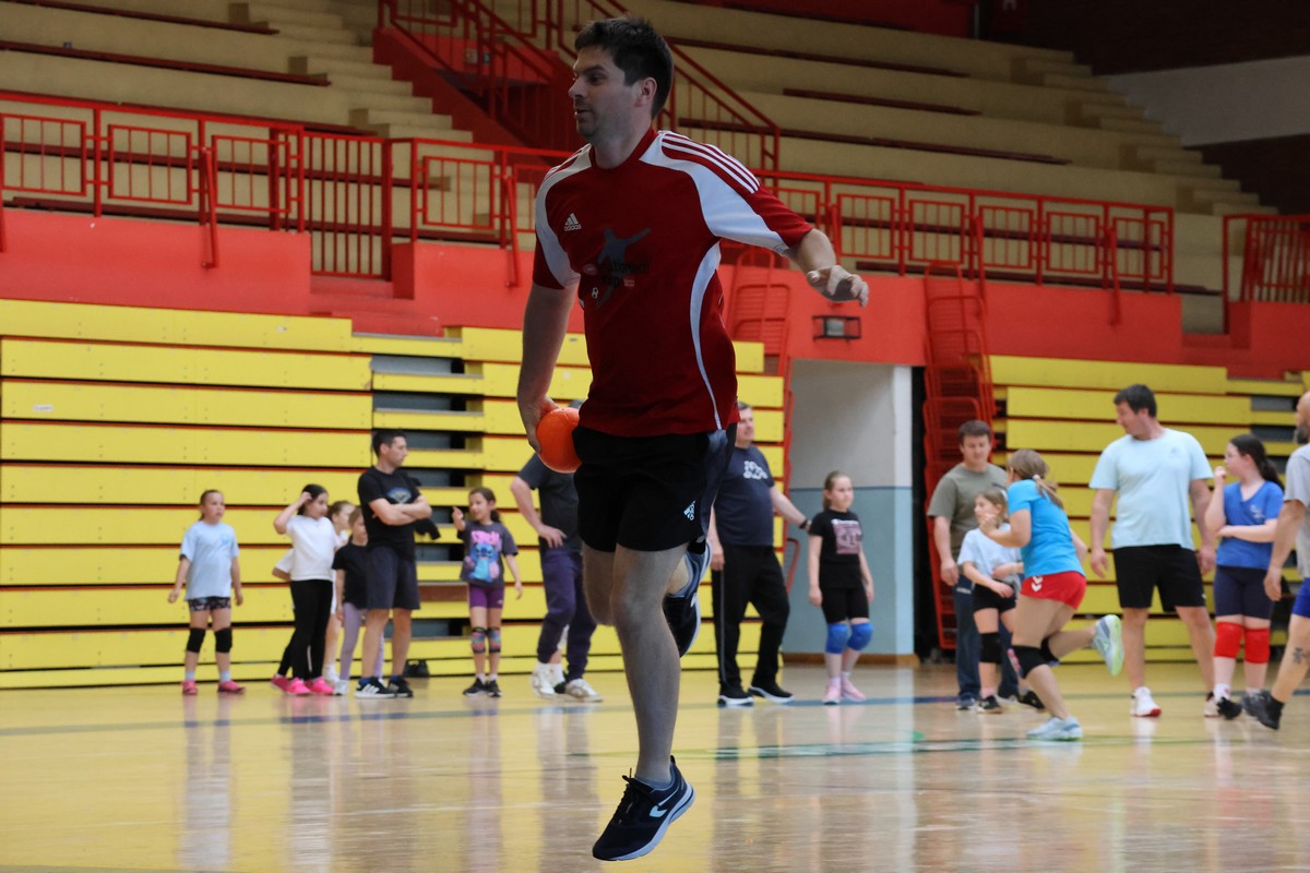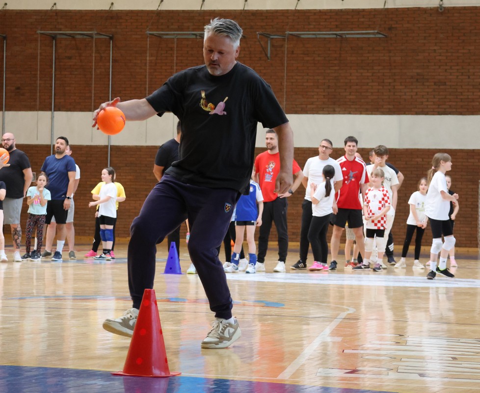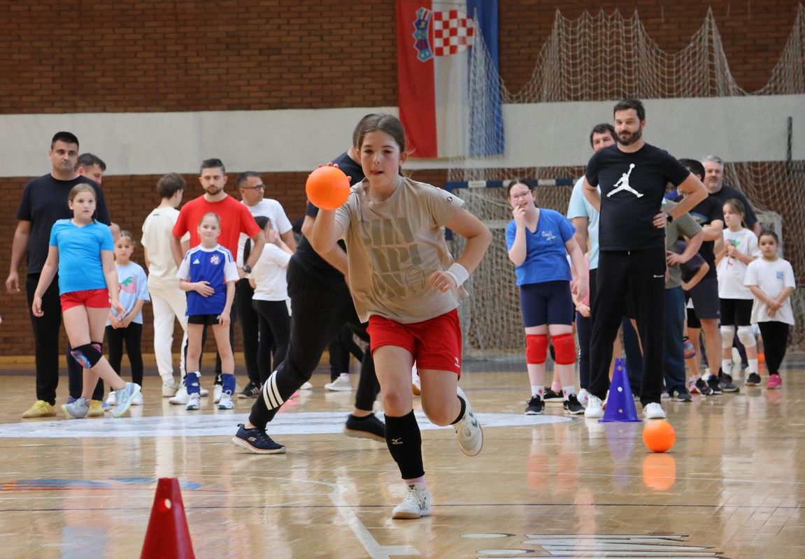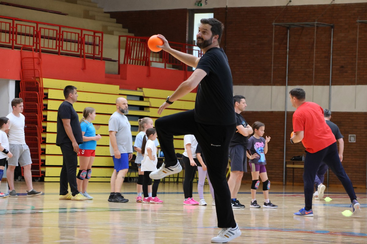 U sklopu projekta Dadathlon, inicijative koju provodi Hrvatska udruga tata, a koja promiče aktivno i kvalitetno provođenje vremena roditelja i djece, u sportskoj dvorani Srednje škole Koprivnica jučer je održan poseban zajednički trening naših U8 i U10 rukometašica zajedno s njihovim očevima, braćom i obiteljima.