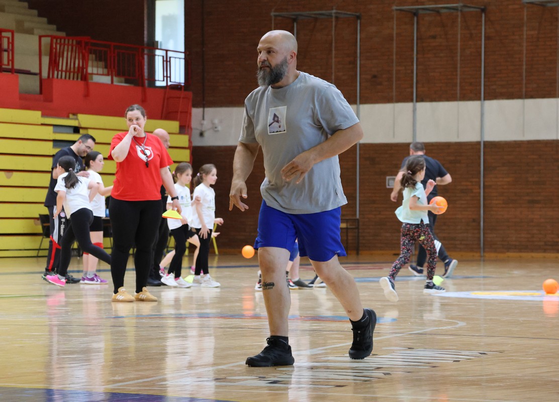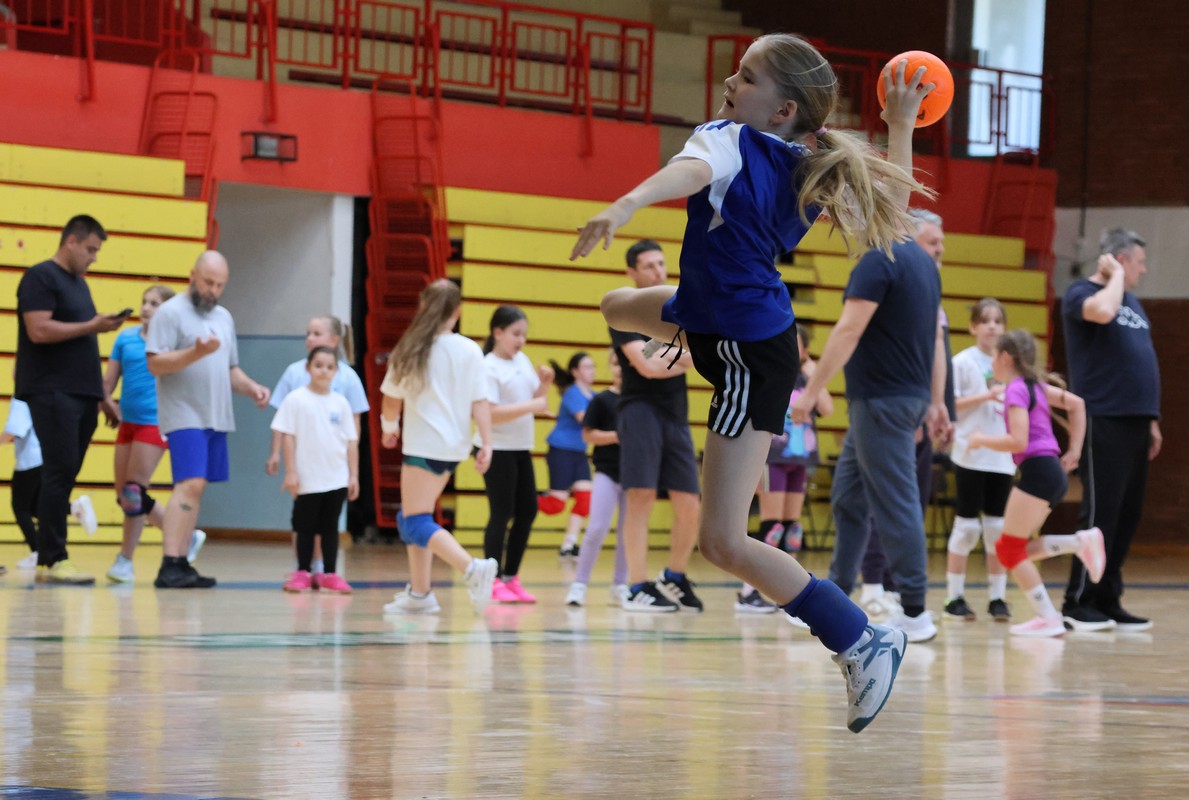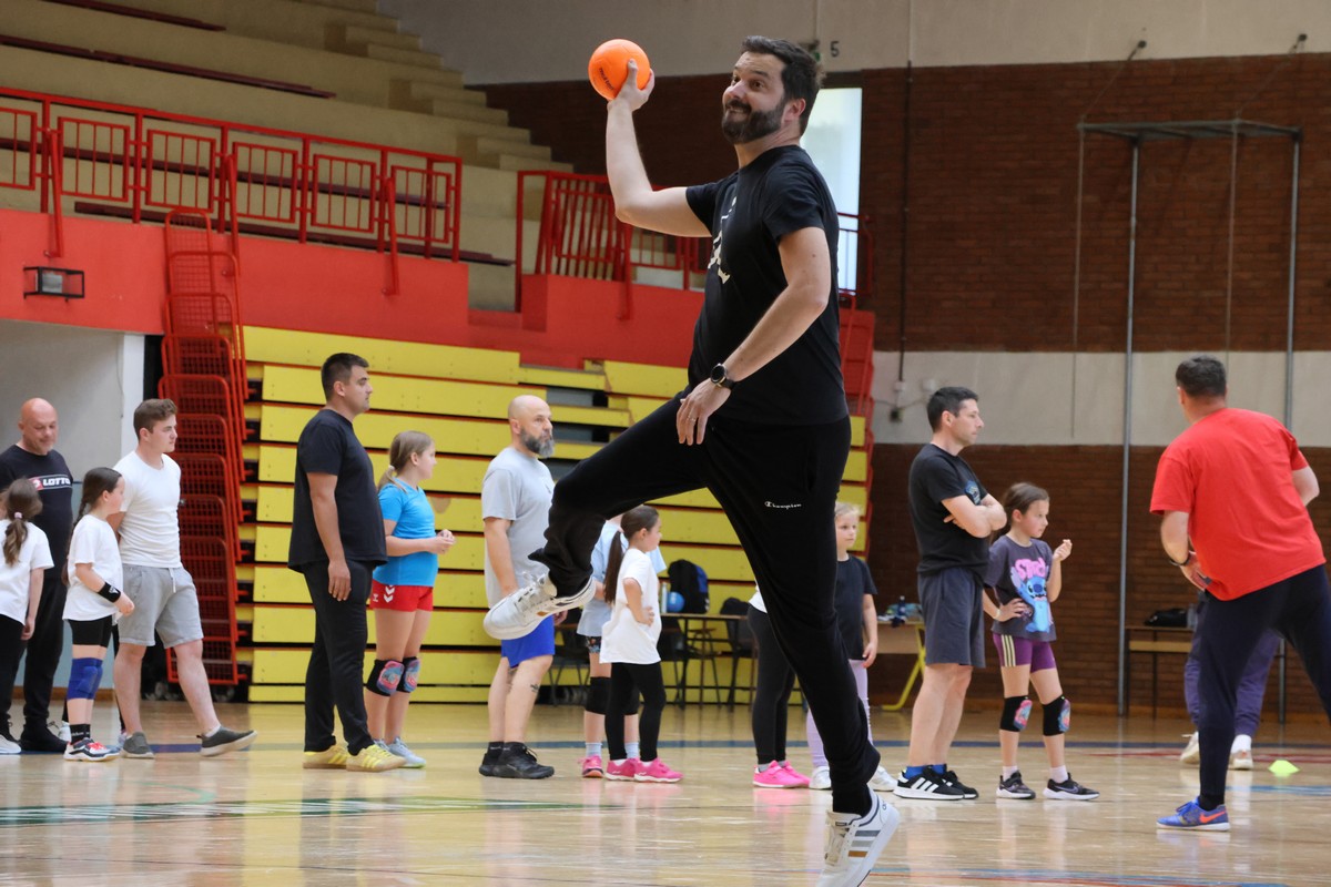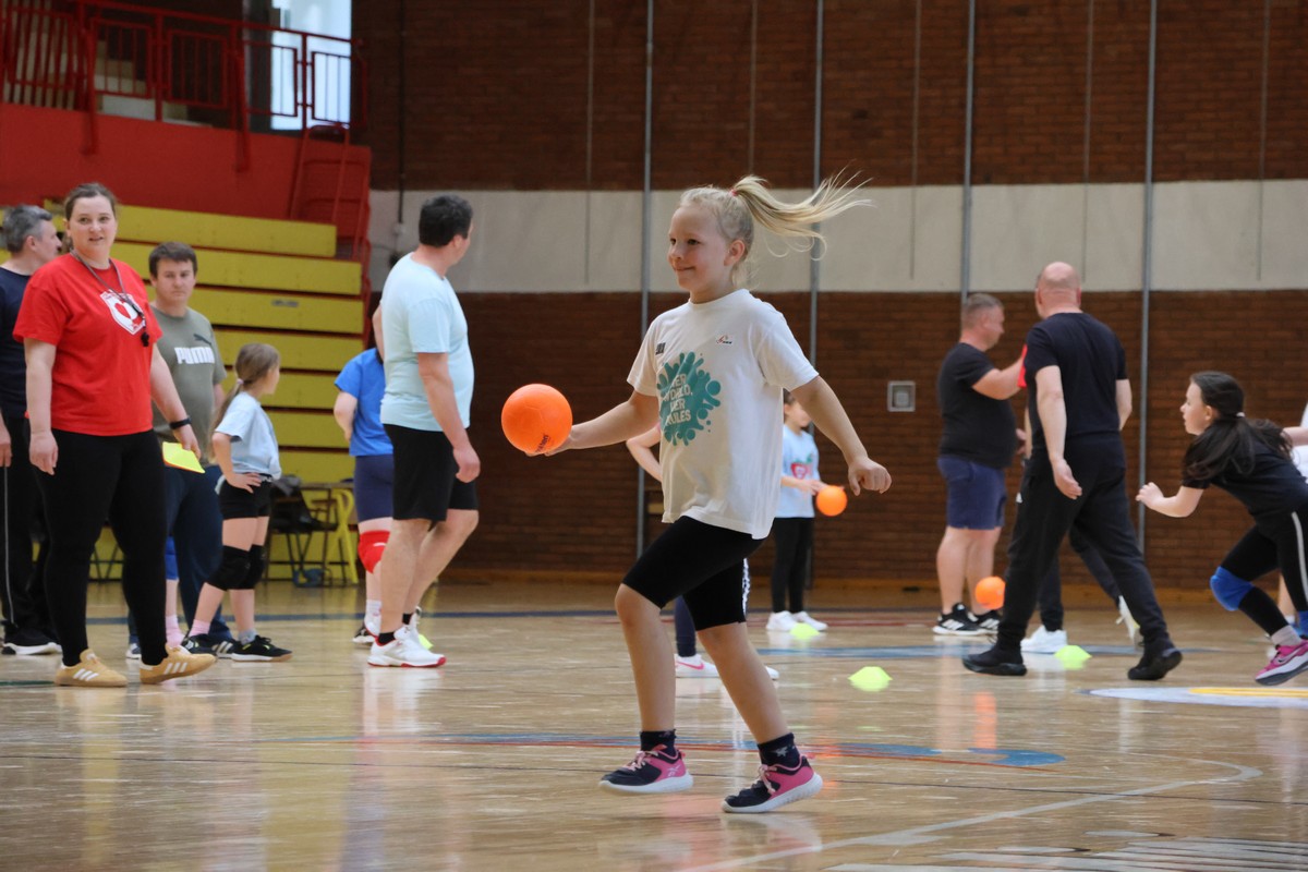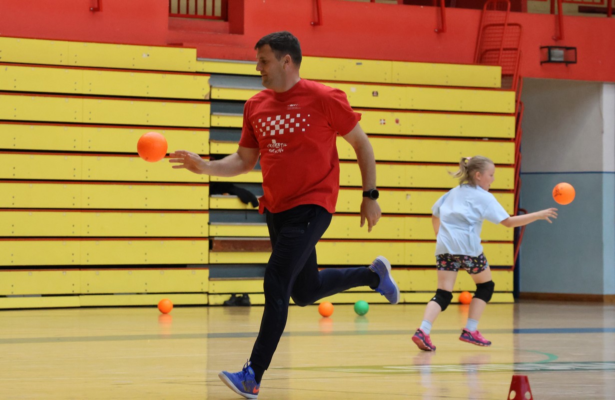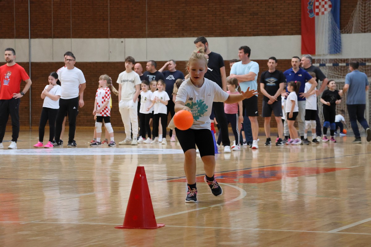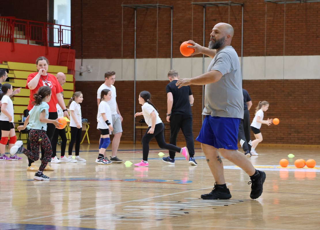 U sklopu projekta Dadathlon, inicijative koju provodi Hrvatska udruga tata, a koja promiče aktivno i kvalitetno provođenje vremena roditelja i djece, u sportskoj dvorani Srednje škole Koprivnica jučer je održan poseban zajednički trening naših U8 i U10 rukometašica zajedno s njihovim očevima, braćom i obiteljima.