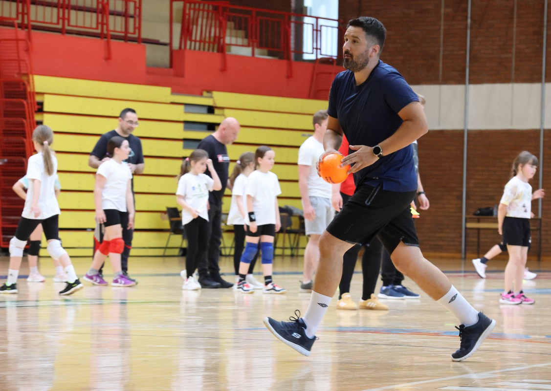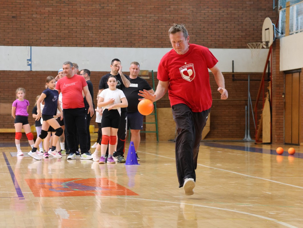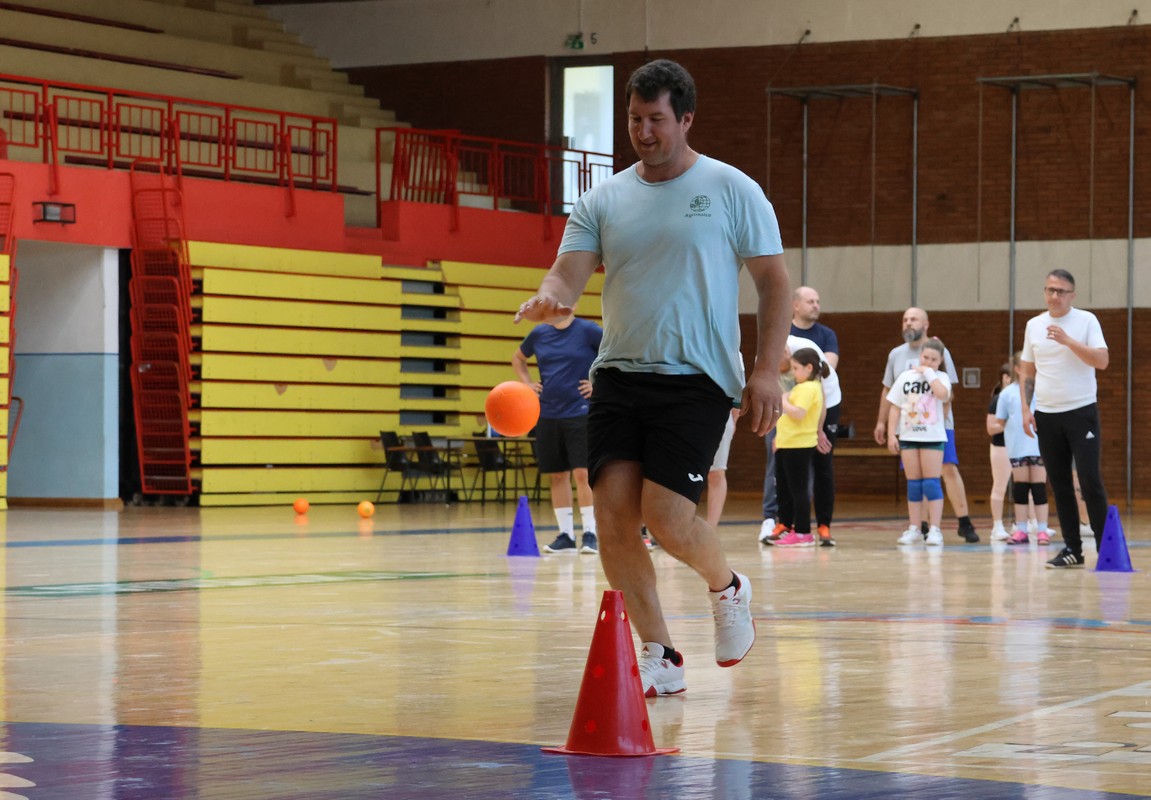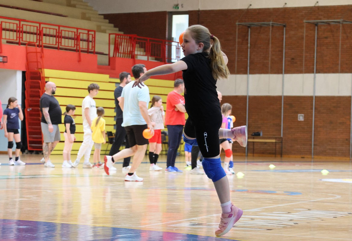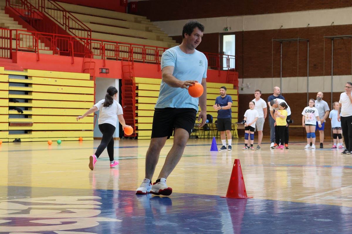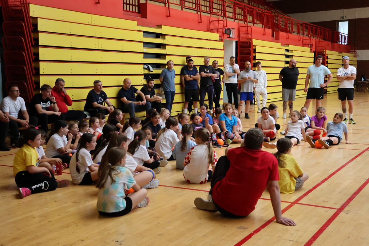 U sklopu projekta Dadathlon, inicijative koju provodi Hrvatska udruga tata, a koja promiče aktivno i kvalitetno provođenje vremena roditelja i djece, u sportskoj dvorani Srednje škole Koprivnica jučer je održan poseban zajednički trening naših U8 i U10 rukometašica zajedno s njihovim očevima, braćom i obiteljima.